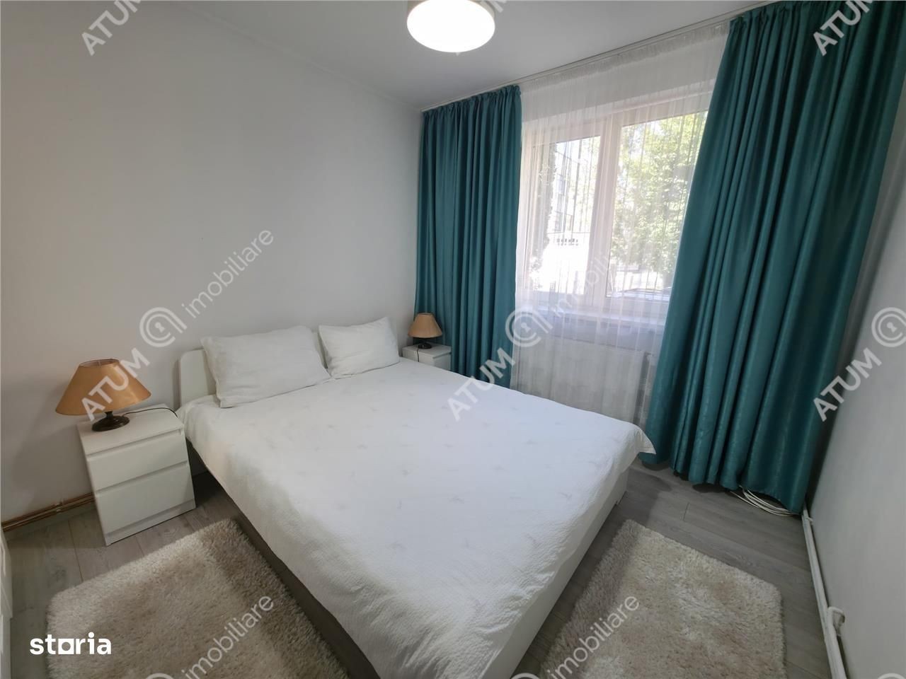 Va propunem spre inchiriere un apartament format din 3 camere decomandate, situat la parterul unui bloc de P+5, in zona de Mihai Viteazu din Sibiu. Apartamentul are o suprafata utila de 75 mp, fiind compus din: holul de acces amenajat cu zona speciala pentru cuier si pantofar, bucataria, doua dormitoare si baia dotata cu dus cu rigola tip walk-in, fereastra de aerisire si obiecte sanitare. Paracarea se realizeaza pe locurile aflate in fata imobilului. Apartamentul se inchiriaza complet mobilat si utilat cu electrocasnice: frigider, plita pe gaz, masina de spalat vase, cuptor electric, cafetiera, cuptor cu microunde, hota, masina de spalat rufe. Finisajele si dotarile apartamentului sunt: usa de acces din metal placata cu panou MDF, usi interioare din lemn, parchet laminat de 14 mm, geamuri termopan cu tamplarie PVC, pereti zugraviti in lavabila alba, prize si intrerupatoare marca Schneider, incalzirea se realizeaza prin centrala proprie cu calorifere din otel. Zona unde se afla apartamentul este una foarte linistita, deoarece este in imediata apropiere a punctelor de interes major ale orasului. Pretul de inchiriere al acestei proprietati este de 600 euro + o luna garantie. ID intern: 2929.