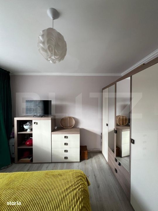 Blitz propune spre vânzare un apartament primitor, complet mobilat și renovat recent, situat în cartierul Dâmbu Pietros, într-un bloc cu 10 etaje dotat cu lift nou. Locuința se află la etajul 7 și se bucură de o suprafață generoasă de 66 mp, plus spatii generoase de depozitare ( suprafata totala 81 81 mp ), compartimentați eficient pentru confortul întregii familii. Apartamentul dispune de: Living mobilat, ideal pentru momente de relaxare; Dormitor matrimonial cu mobilă nouă și finisaje moderne; Cameră secundară amenajată cu mobilă nouă, perfectă pentru copii sau birou, cu acces la balcon deschis; Bucătărie complet utilată și mobilată, cu balcon închis și spațiu pentru servit masa; Baie recent renovată, modernă și elegantă; Cămară cu aerisire exterioară, foarte practică pentru depozitare; O pivniță generoasă (12-15 mp), oferind spațiu suplimentar de organizare. Îmbunătățiri și dotări: Parchet laminat și gresie în stare excelentă; Uși interioare MDF noi, ușă de intrare din stejar; Termopane noi și izolație exterioară de 5 cm, care asigură confort termic sporit; Centrală termică proprie (3 ani) și calorifere noi; Apartamentul este luminos și aerisit, datorită poziționării și suprafeței mari a camerelor. Este un apartament complet mobilat, gata de mutat imediat, într-o zonă liniștită, cu acces rapid la magazine, școli și mijloace de transport. Un cămin cald și primitor, ideal pentru o familie care își dorește spațiu, confort și liniște! Dacă sunteți în căutarea unui apartament modern, confortabil și gata de mutat, această proprietate este alegerea ideală. Nu ezitați să ne contactați pentru mai multe detalii sau pentru a programa o vizionare.
