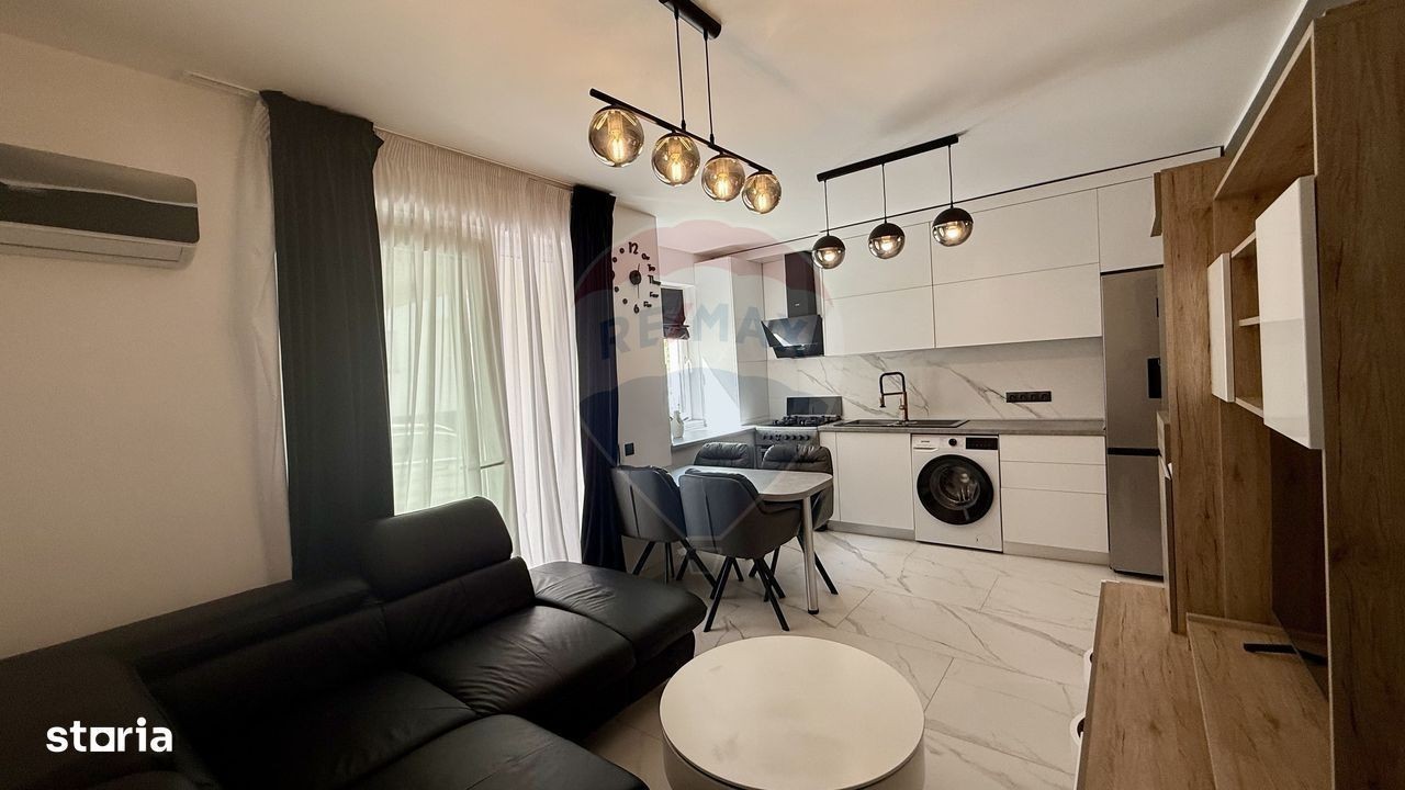 Vă oferim spre închiriere un apartament cochet, modern, complet mobilat și utilat, situat într-un bloc nou, cu design elegant. Proprietatea este amplasată la parter și dispune de un living luminos cu bucătărie open space, un dormitor confortabil, baie, hol de intrare, precum și o curte proprie pentru momente de relaxare. De asemenea, beneficiați de două locuri de parcare. Apartamentul este echipat cu televizoare în ambele camere, electrocasnice moderne și aer condiționat pentru confortul dumneavoastră. Vă rugăm să rețineți că nu se acceptă animale de companie. Pentru mai multe detalii și programări, vă rog să mă contactați telefonic.
