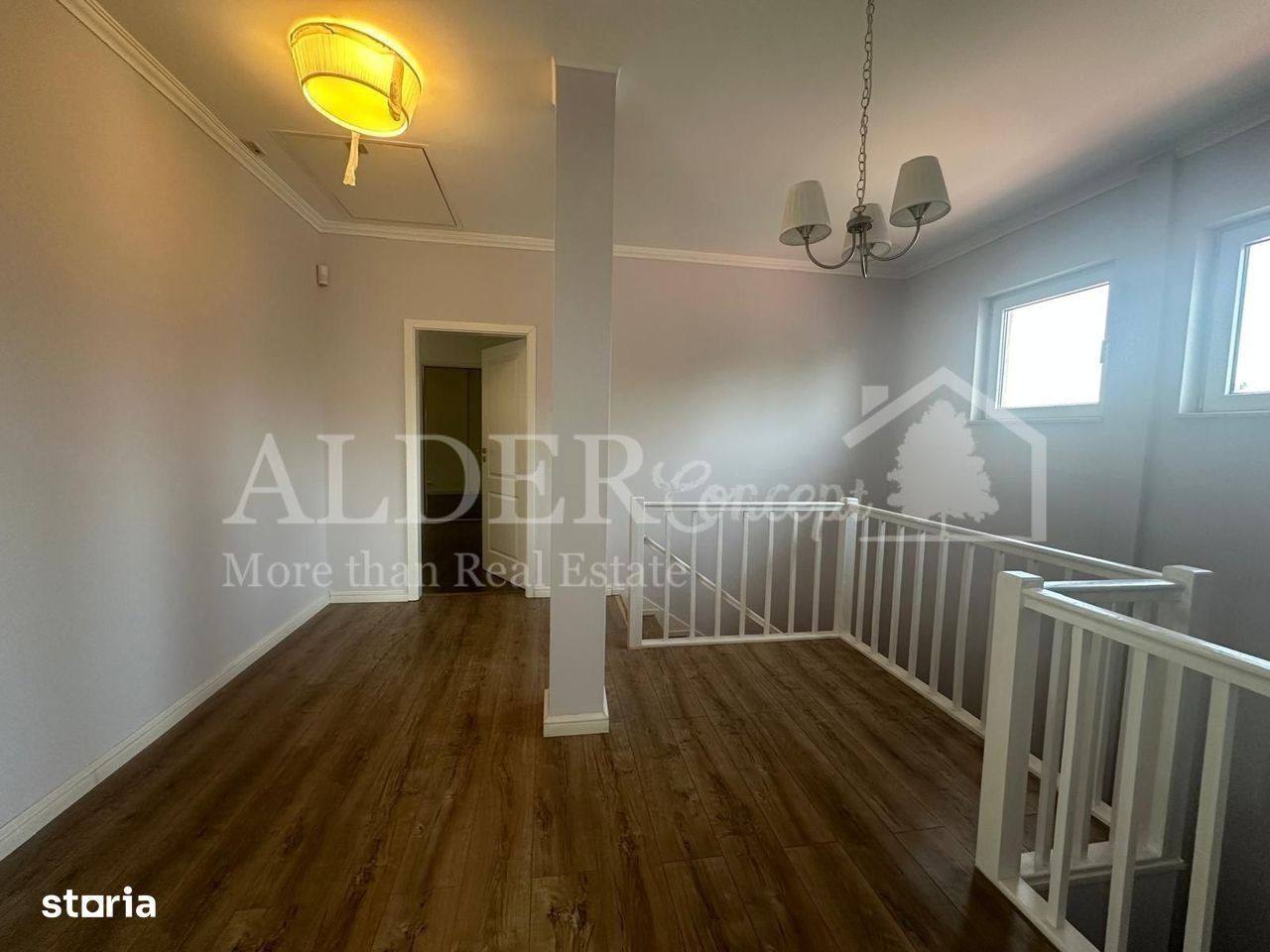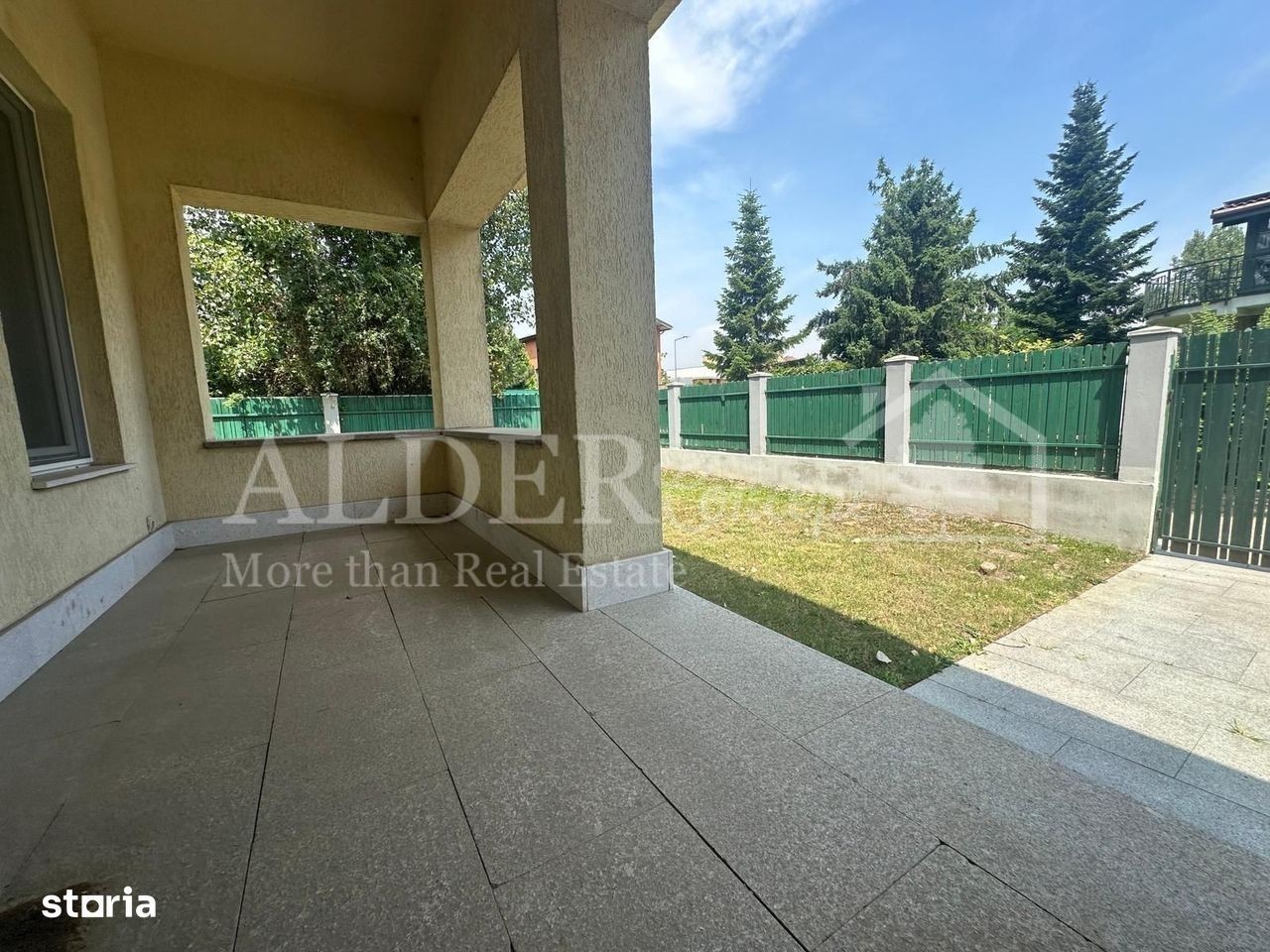 Vila in complex rezidential cu câteva case, se afla in Pipera, aproape de intersectia cu Iancu Nicolae, are 571 mp teren, 417 curte libera frumos grupată, 237 mp construiți, 161 utili. Vila, cu spații largi, bine împărțita si luminoasa, are 5 camere, 4 dormitoare, dressing, 4 bai, bucătărie închisă, camera tehnica, living generos de aproape 50 mp la care se adăuga terasa de 10 mp si veranda de 15 mp plus garajul de 20 mp. Configurație: Parter - living - dining, bucatarie, dormitor cu baie proprie, grup sanitar, camera tehnica, garaj, spațiu depozitare sub scara; Etaj 1 - dormitor matrimonial cu camera pentru dressing si baie proprie, 2 dormitoare, baie, hol generos.