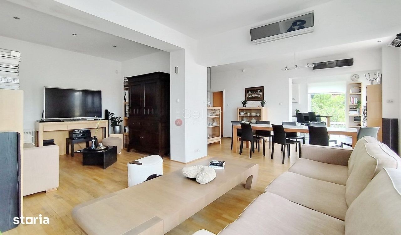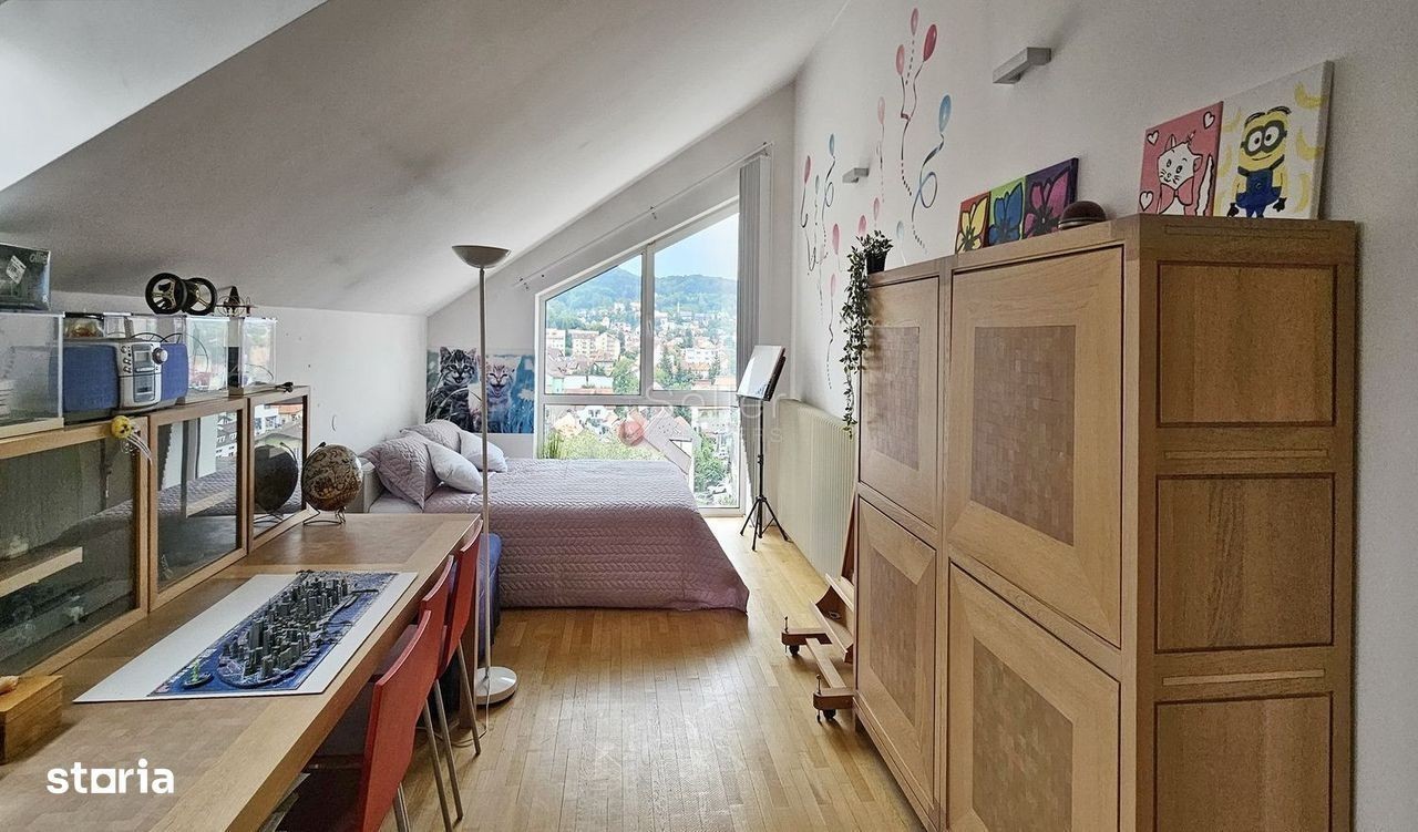 LOCALIZARE: Aceasta proprietate este situată într-o zonă liniștită și verde din Brașov. Compartimentarea inteligenta și spatiile generoase, sunt ideale pentru o familie, sau pentru conversie în pensiune / boutique hotel, datorita locatiei, la doar cateva minute distanta de principalele monumente istorice si culturale din Brasov. Vila se remarca prin arhitectura sa solida, imbinand armonios stilul architectural modern intr-o locatie centrala si pitoreasca. COMPARTIMENTARE: Detinand 9 camere, casa este dispusa pe un teren generos de 1600 mp | 3 nivele | 4 bai | 4 terase avand dispunere pe D+P+ M, 347 mp utili, si urmatoarea compartimentare: DEMISOL I 84 mp MP - spatiu de relaxare și revitalizare: - Zona dedicata fitnessului și wellnessului, completată de o sauna privata si baie - Dormitor pentru oaspeți sau camera multifunctionala - Terasa cu vedere panoramica spre munti PARTER I 140 MP- destinat zonei de zi, fiind compartimentat in: - Un living spatios, de tip open-space, perfect pentru relaxare si socializare. - Zona de dining, care dispune de o suprafata generoasa. - Camera multifunctionala, cu rol de depozitare, sau birou. - Bucataria, inchisa, complet utilata si echipata. - Garaj cu o suprafata generoasa de 23 mp. - Open space, ce dispune de iesire separata, catre cele doua terase cu suprafete totale de 51 mp ce ofera o priveliște deosebită spre munți si spre dealul Cetatii, si care creeaza un spatiu privat si linistit, pentru activitati creative sau profesionale; - Baia si holul, camera tehnica, acestea completând util si elegant spatiul de la parter. MANSARDA | 135 MP- rezervat zonei de noapte/odihna, este dispus pe: - Dormitorul matrimonial, cu baie privata, un spatiu intim si relaxant; - Dormitorul copilului, cu mobilier adecvat si functional. - Dormitorul de oaspeti, conceput ca un spatiu perfect pentru odihna. - Camera de studiu/ biblioteca. - Baia, deserveste cele doua dormitoare, cu acces din hol. - Holul, spatios si luminos, are in componenta scara de acces din lemn masiv. DOTARI: - Centrală termica cu incalzire pe calorifere - Geamuri termopan (eficienta termica si fonica) - Parchet din lemn natural în camere - Bucătarie mobilata și utilata - Sauna privata la demisol - Garaj inclus - Structură solida din beton armat - constructie durabila - Teren de 1600 mp - curte verde, gradina, spatiu pentru relaxare - Posibilitate de parcare pentru mai multe autoturisme IMPREJURIMI: Vila este situata intr-o zona de case, acces rapid către centrul orasului, scoli, si zone de interes. Accesul auto, pana in Piata Sfatului se poate face in cca. 10 minute. ATRACTII ZONA: Magazine, Restaurante, cafenele. FORMA ACHIZITIONARE: Se accepta plata prin accesare credit. NOTA: Informatiile prezentate reflecta situatia reala a proprietatii, fara a constitui o oferta contractuala. Aceste date au fost obtinute verbal, de la titularul de drept al imobilului. Structura acestei prezentari nu poate fi reprodusa, fara acordul scris al The Seller and Partners.