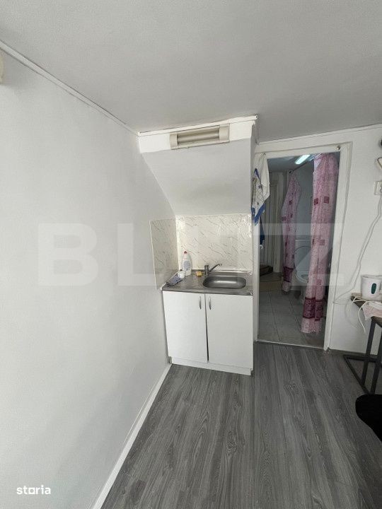 Blitz vă propune spre închiriere o garsonieră modestă, situată la parterul unui imobil din zona Piața Mihai Viteazu - la câțiva pași de centrul orașului și de mijloacele de transport în comun. Suprafață utilă: 20 mp Compartimentare: Hol de intrare cu minibucătărie Baie prin care se face trecerea spre zona de dormit Spațiu de dormit la nivel superior, accesibil prin scară interioară Dotări: Geamuri termopan cu tâmplărie PVC Încălzire cu sobă de teracotă Cat friendly - se acceptă animale de companie. O opțiune accesibilă, ideală pentru cine caută o locuință simplă, aproape de toate facilitățile din centrul orașului. Contactează-ne pentru a programa o vizionare!
