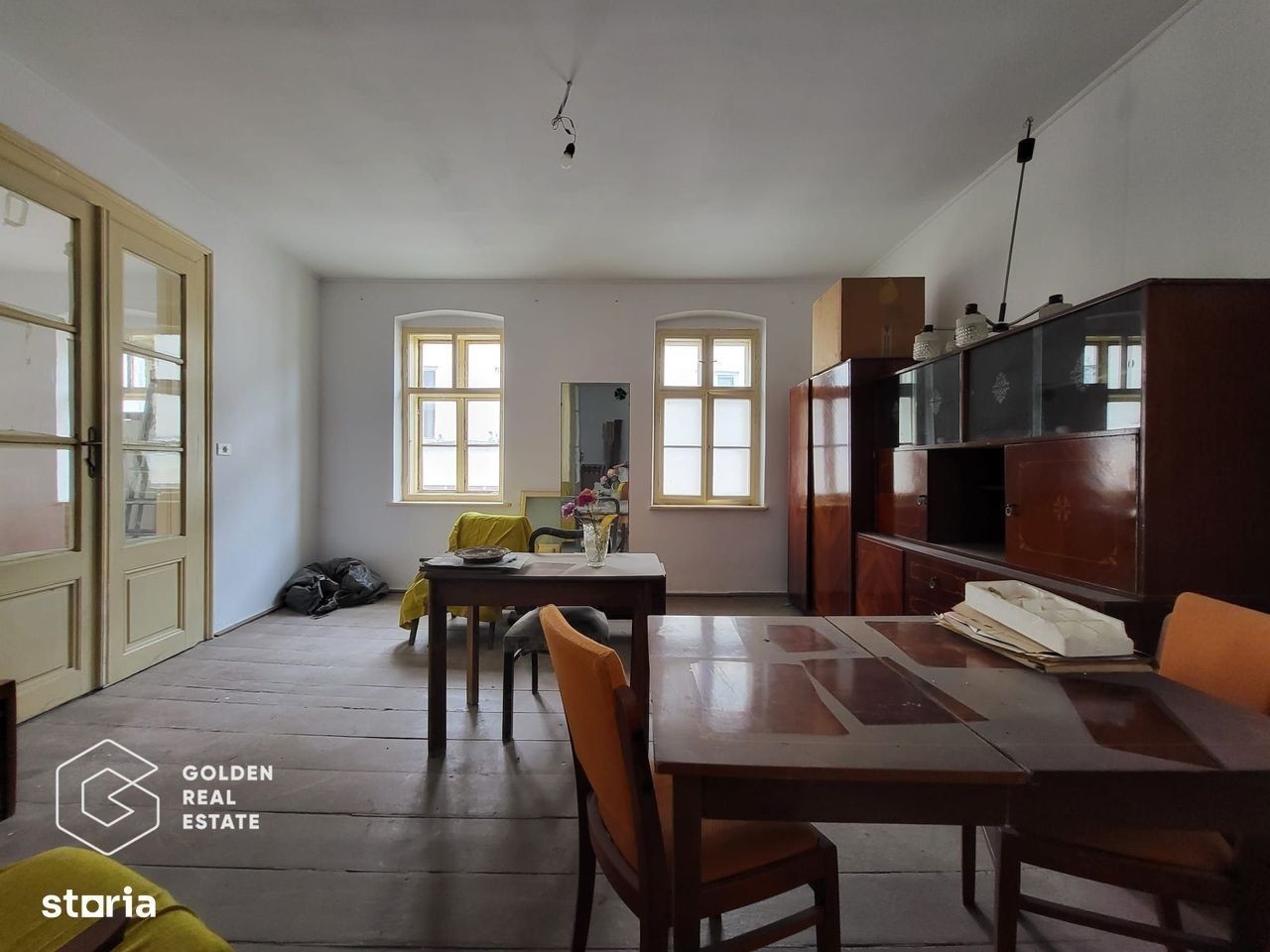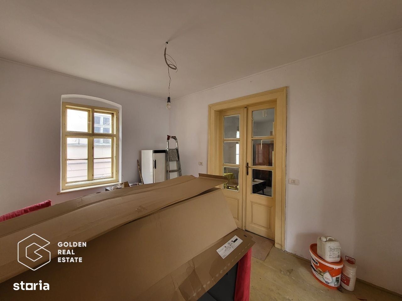ID: CP2688067 Golden Real Estate Lipova vă propune spre vânzare un apartament ultracentral cu 2 camere în localitatea Lipova, județul Arad. Acest apartament este poziționat vis a vis de Primărie, la etajul 1, într-o clădire cu arhitectură clasică de la începutul secolului XX. Apartamentul este compus din: 2 camere, bucātārie, cămară alimente, încăpere amenajată pentru baie, un hol mare care decomandeazā încăperile și casa scārii. Acest apartament a fost renovat relativ recent, are instalație electricā și sanitarā schimbatā, pereții gletuiți (la alb), geamuri și uși din lemn, podele in camere si bucătărie, gresie și faianță în bucătărie și baie, iar in camere sobe de teracotā. Apartamentul este înalt și luminos, suprafața construită este de circa 90 mp, iar utilā de circa 70 mp. Acest apartament este parțial mobilat, necesită obiecte sanitare si unele îmbunătățiri. Preț: de 46.000 euro, negociabil. Comision 0 % la vânzare. Agent exclusiv Golden Real Estate Lipova.