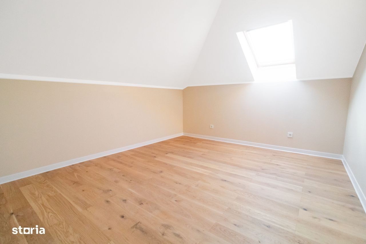 Vă propunem spre vânzare o casă nou construită, situată în cartierul Primăverii, pe Strada Crinului, o zonă liniștită și frumoasă din Râșnov, la doar câțiva pași de pădure, locul ideal pentru cei care caută liniște, aer curat și apropiere de natură. • Suprafață totală teren: 450 mp • Suprafață construită: 140 mp • Suprafață utilă: 110 mp Compartimentare: • Parter: living spațios, bucătărie, 2 băi, hol, dormitor, spațiu de depozitare / dressing, cameră tehnică • Mansardă: 2 dormitoare, baie, hol Construită din materiale calitative: cărămidă 30 cm, izolație polistiren 15 cm, tâmplărie Salamander tripan, încălzire în pardoseală, iluminare exterior cu spoturi, poartă acces auto. Avantaje: • Casă luminoasă și eficient compartimentată • Teren cu spațiu pentru grădină / terasă / loc de joacă • Zonă liniștită, cu acces rapid către punctele principalele de interes Casa este racordată la toate utilitățile: curent, gaz, apă, canalizare. Proprietatea este ideală atât pentru locuință permanentă, cât și pentru casă de vacanță, având avantajul unei poziționări excelente între munți și pădure, dar și proximitate față de Brașov, Bran și Poiana Brașov. TUR VIDEO & TUR 360 linktr.ee/imobiliarerasnov