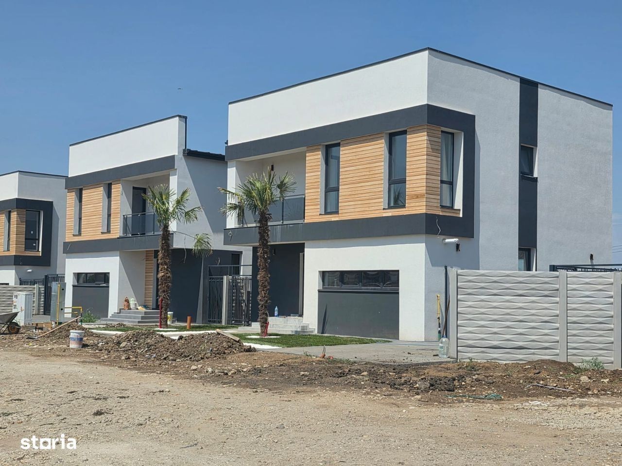 Va propun spre vanzare o casă individuală de lux amplasată în comuna Berceni, cu 4 camere, inclusiv 3 dormitoare și finisaje moderne, oferă un spațiu de locuit foarte confortabil și bine organizat, ideal pentru o familie. Iată câteva detalii cheie care fac această proprietate deosebită: 1. *Compartimentare inteligentă*: Cele 5 camere includ 4 dormitoare, unul dintre ele fiind matrimonial cu dressing și baie proprie, ceea ce oferă un plus de confort și intimitate pentru proprietari. Celelalte două dormitoare sunt ideale pentru copii sau oaspeți. 2. *Spații generoase*: Casa dispune de o bucătărie mare, perfectă pentru o familie care gătește des sau care dorește un spațiu de luat masa în interior. Cele 3 băi oferă suficientă flexibilitate și evită aglomerația dimineața. 3. *Finisaje moderne*: Finisajele moderne contribuie la estetica de lux a casei, oferind o atmosferă elegantă și confortabilă. Materialele de calitate și designul atent ales adaugă valoare și durabilitate locuinței. 4. *Curte proprie de 330 mp*: Curtea generoasă oferă un spațiu excelent pentru relaxare, grădinărit, sau activități în aer liber, dar și pentru amenajarea unui foișor, loc de joacă sau chiar a unei piscine. 5. *Localizare în comuna Berceni*: Amplasarea într-o zonă liniștită, în comuna Berceni, aduce un echilibru între viața de la periferia orașului și accesul relativ ușor la București. Este o zonă în dezvoltare, apreciată pentru spațiile verzi și atmosfera mai relaxată. Această casă combină perfect spațiul, confortul și eleganța, fiind potrivită pentru o familie care își dorește o locuință modernă și spațioasă într-o zonă mai retrasă și liniștită. Comision 0% Pretul afisat nu contine TVA