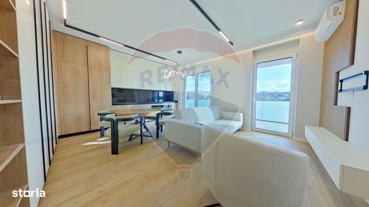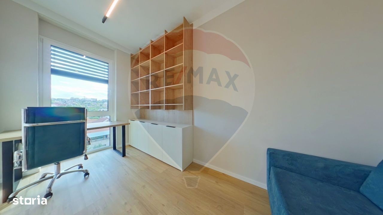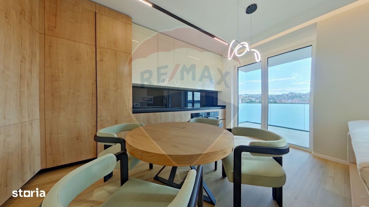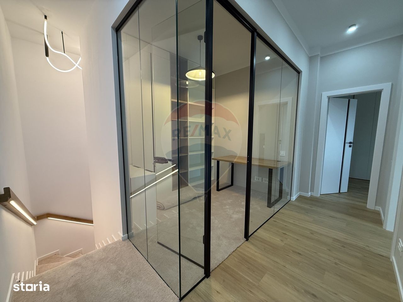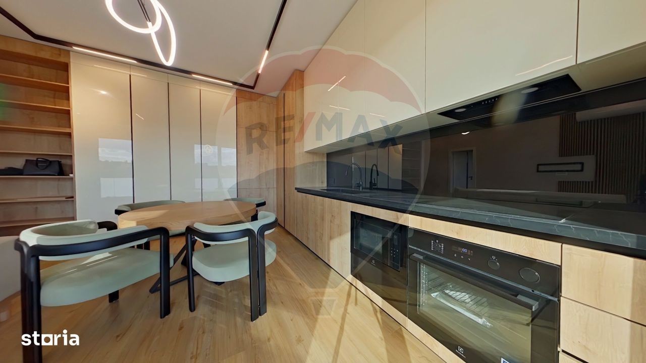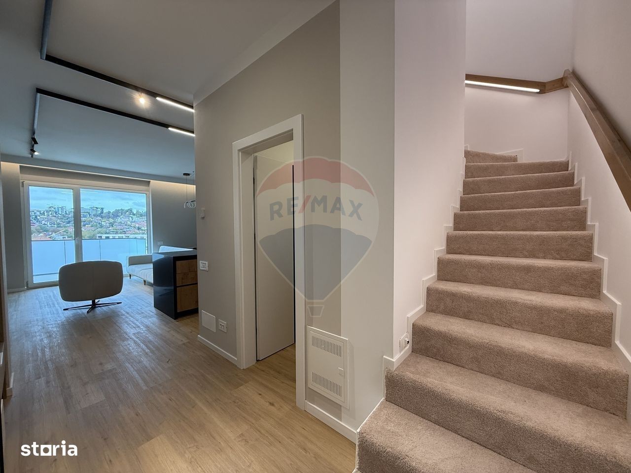RE/MAX va propune spre inchiriere un penthouse ultrafinisat situat in zona semi-centrală, a orasului,pe strada Constantin Brancusi. Apartamentul se află la etajul 5 si ER al unui bloc premium finalizat in anul 2025 si are o suprafată de 120mp utili la care se adaugă doua balcoane panoramice. Ambele beneficiază de o privelista superbă asupra orasului. Imobilul in care se află apartamentul dispune de lift, videointerfon, curte interioară comună cu loc de joaca si este localizat la numai 10 minute plimbare de P-ta Cipariu. Proprietatea beneficiază de orientare sudică, ceea ce înseamnă lumină naturală pe tot parcursul zilei, un consum redus de energie și o atmosferă mereu caldă și primitoare La intrare ne intampină un hol generos, scara interioară,o baie si un dressing. Zona de zi impresionează printr-un design modern și funcțional. Livingul este amenajat cu o canapea și un fotoliu confortabil, creând un spațiu ideal pentru relaxare și socializare. Bucătăria modernă este complet utilată și integrată armonios în zonă, oferind atât un aspect elegant, cât și practic cu zona de bar/insula pentru 4 persoane. Alaturi se află si un birou perfect pentru activități profesionale sau studiu cu un fotoliu. Mobilierul realizat la comandă este adaptat perfect spațiului. La etaj, locuința dispune de un hol generos, un birou si două dormitoare. Dormitorul matrimonial are zona de dressing si baie proprie, dotată cu cadă. Camera de copii este luminoasă și bine proporționată. Ambele dormitoare au acces direct la o terasă cu pardoseală flotantă, ideală pentru relaxare în aer liber. Întreaga locuință beneficiază de sistem de aer condiționat pentru confort optim în orice anotimp si rulouri de aluminiu exterioare actionate electric. Se inchiriaza impreună cu un loc in garajul subteran pentru care se percepe o taxa suplimentară de 100euro. Va rugăm sa parcurgeti turul virtual si sa nu ezitati sa ne contactati pentru vizionari!