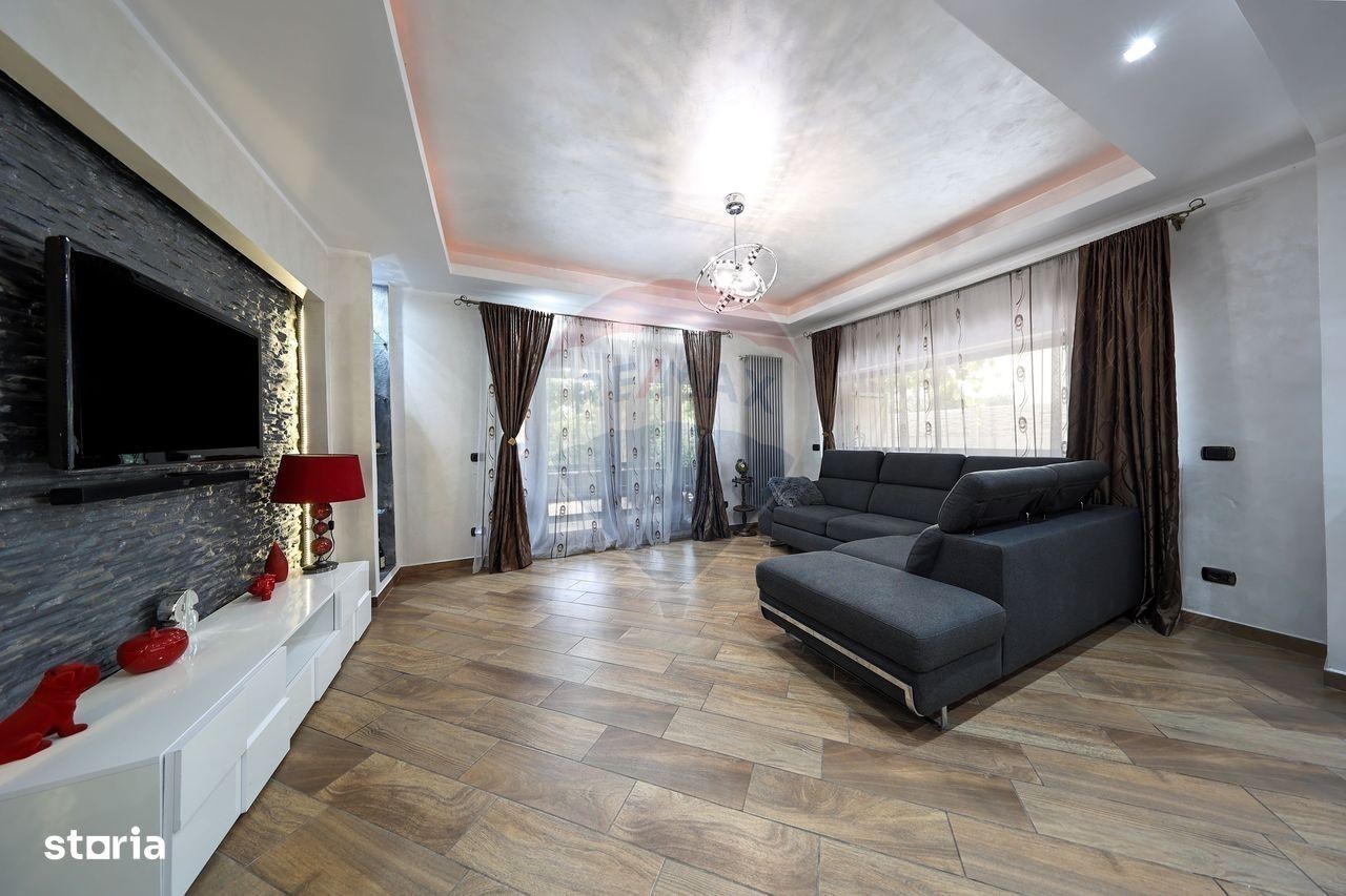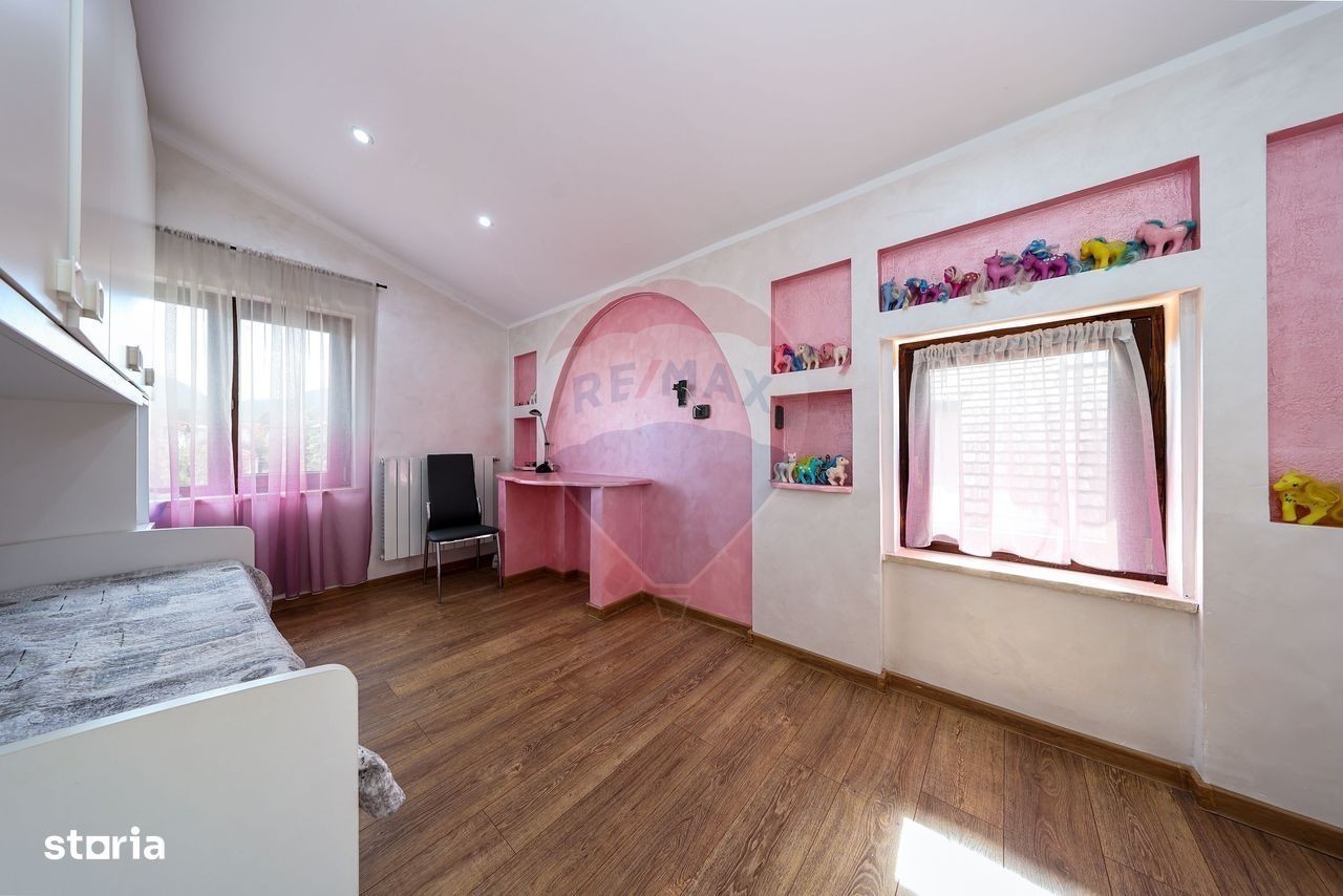 Va propunem spre vanzare, in Săcele, la poalele munților, o casă tip conac, gândită să aducă împreună soliditatea unei construcții trainice și farmecul unui cămin cald. Este o casă duplex, cu două apartamente și o curte comună, unde fiecare detaliu a fost ales pentru confort și frumusețe, fiind potrivita o familie numeroasa care isi doreste sa locuiasca impreuna. Primul apartament își deschide ușa către spațiu și intimitate: trei dormitoare luminoase, dintre care două cu baie proprie, un salon primitor, o bucătărie funcțională, o baie de serviciu și o debara. La etaj, sunt trei dormitoare, dintre care doua au baie proprie. Cel de-al doilea apartament îmbină eleganța cu utilul: la parter un salon modern, bucătărie mobilata si utilata, o baie, iar la etaJ doua dormitoare, un dresinG si o baie. Structura casei este construită pe 47 de stâlpi din beton armat, cu grinzi și planșee solide, îmbrăcată în travertin și piatră decorativă adusă din Italia, prezentand rezistență și rafinament. Tâmplăria este Salamander, iar izolarea completă păstrează căldura iarna, și răcoarea vara. Camera tehnică a casei se află într-o cameră dedicată: o centrală pe lemne cu boiler de 1000 litri, centrala pe gaz, pompe și distribuitoare pentru fiecare etaj, calorifere moderne din aluminiu și instalații electrice de calitate. Totul este pregătit pentru confort pe termen lung. Dar frumusețea acestei case nu se oprește la interior. Curtea, comună dar generoasă, adăpostește un grătar cu bucatarie de vara, și pomi fructiferi si o gradina cu flori. Frontul stradal este de 18 m, iar zidurile cunt din caramida cu grinzi, plansee din beton si pietre decorative. Casa se vinde mobilata si utilata, pentru mai multe detalii si informatii, va rog sa ma contactati. Comision 0 pentru cumparator! Va invitam cu drag la vizionare!