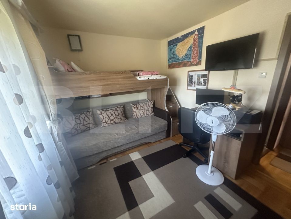 Se oferă spre vânzare un apartament cu 2 camere, semidecomandat, 56 mp utili, situat într-o zonă liniștită din Micro 16, ideal pentru cei care își doresc confort fără griji. Locuința este recent renovată și se vinde complet mobilată și utilată, perfectă pentru mutare imediată sau investiție. Balcon închis tip terasă, amenajat pentru relaxare Acoperiș refăcut, fără probleme sau infiltrații; Izolat blocul interior si exterior Electrocasnice moderne: mașină de spălat vase, mașină de spălat rufe, uscător de rufe, plită, cuptor, hotă și cuptor cu microunde - toate încorporabile Mobilier de calitate, bine întreținut Scara curată, vecini liniștiți; Loc de parcare, boxa beci În apropiere: școli, grădiniță, magazine, mijloace de transport Apartamentul este ideal pentru o familie, un cuplu sau pentru cei care caută o locuință modernă într-o zonă bine conectată și totodată ferită de agitația orașului.