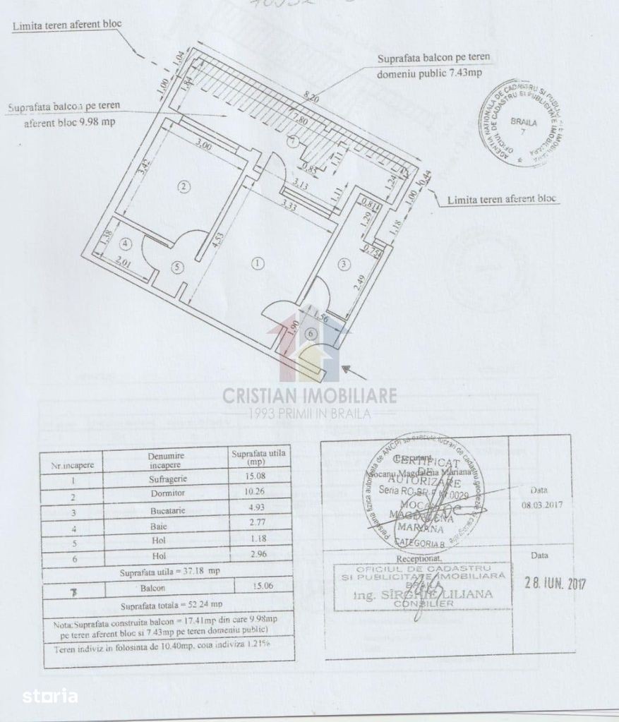 AP 2 camere, Viziru 1, Balcon 17 m inchis in termopan *Centrala termica *Parter *Confort 2 - 52 mp *Termopan exterior *Tamplarie interioara lemn *Flise si gresie *Parchet *Usa metal *Cadastru Cristian Imobiliare - din 1993 Primii in Braila CRS7555 &08