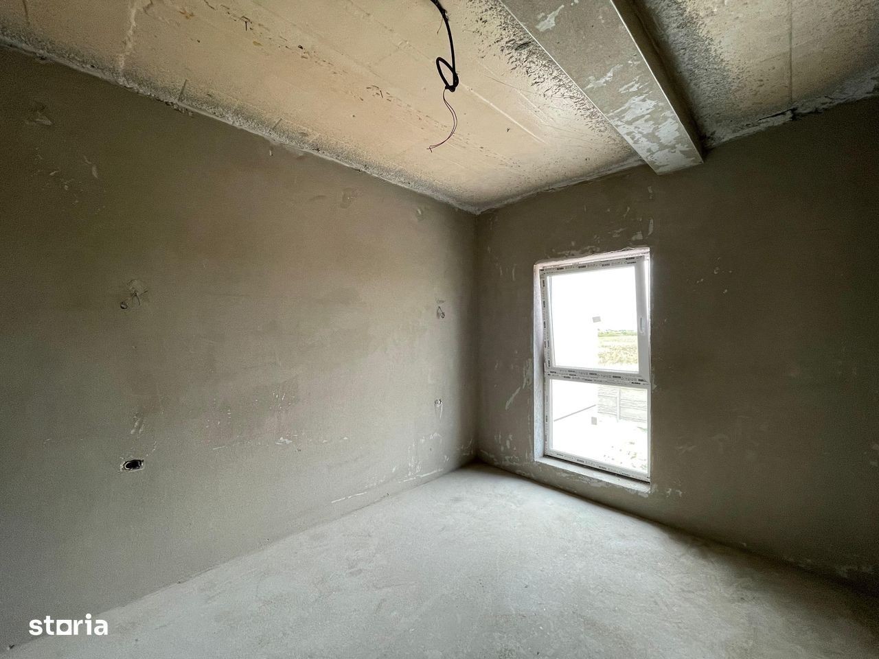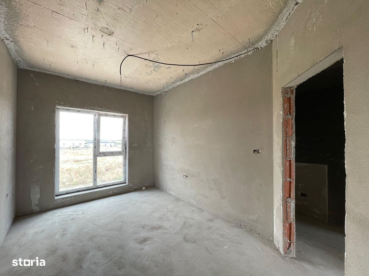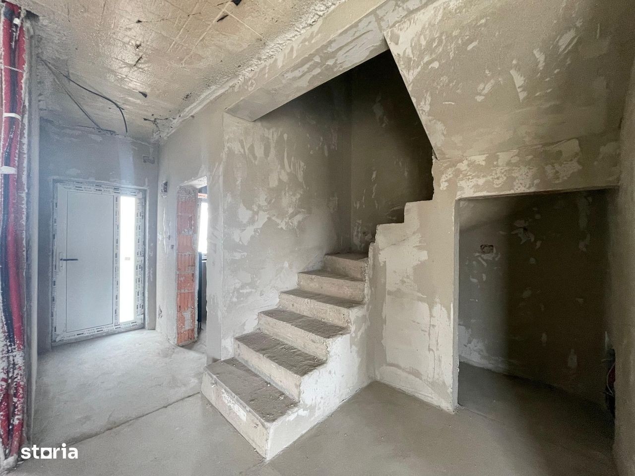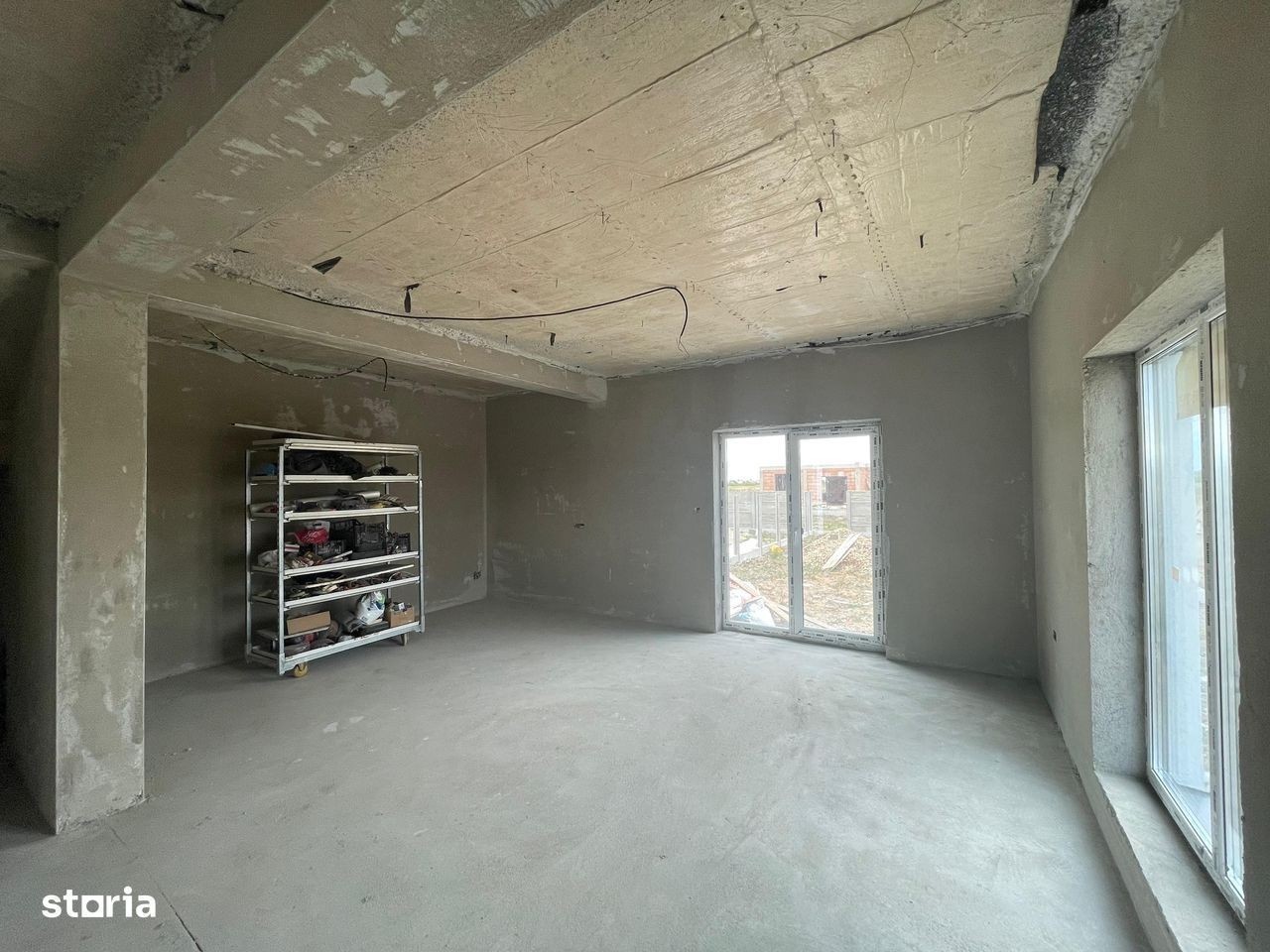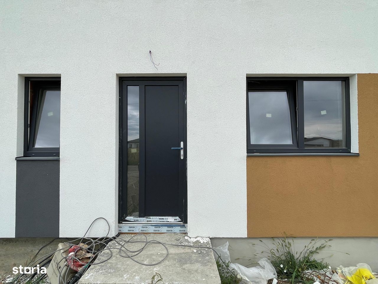Rex Imobiliare va ofera oportunitatea de a achizitiona o jumatate de duplex cu 4 camere si teren generos, situat in Urseni, la doar 5 minute de Timisoara Propietatea ofera 100mp suprafata utila, terasa de 12mp si un teren aferent de 290mp. Compartimentarea este realizata astfel: Parter: - hol - baie - spatiu depozitare - living cu bucatarie openspace - terasa Etaj: - hol - baie - 3 dormitoare Incalzirea se realizeaza prin pardoseala cu ajutorul centralei proprii pe gaz Utilitati: apa, gaz, curent, fosa septica cu drenaj de 12ml Detalii constructie: - structura beton si caramida - ziduri interioare din caramida de 25cm si 12,5cm - ferestre PVC tripan REHAU - izolație exterioară din polistiren de 10 cm - acoperiș din membrana PVC - curte amenajata cu pavaj Pret predare la cheie: 138.900 Euro Negociabil Termen predare: Noiembrie 2025 Pentru mai multe detalii si vizionari sunati la