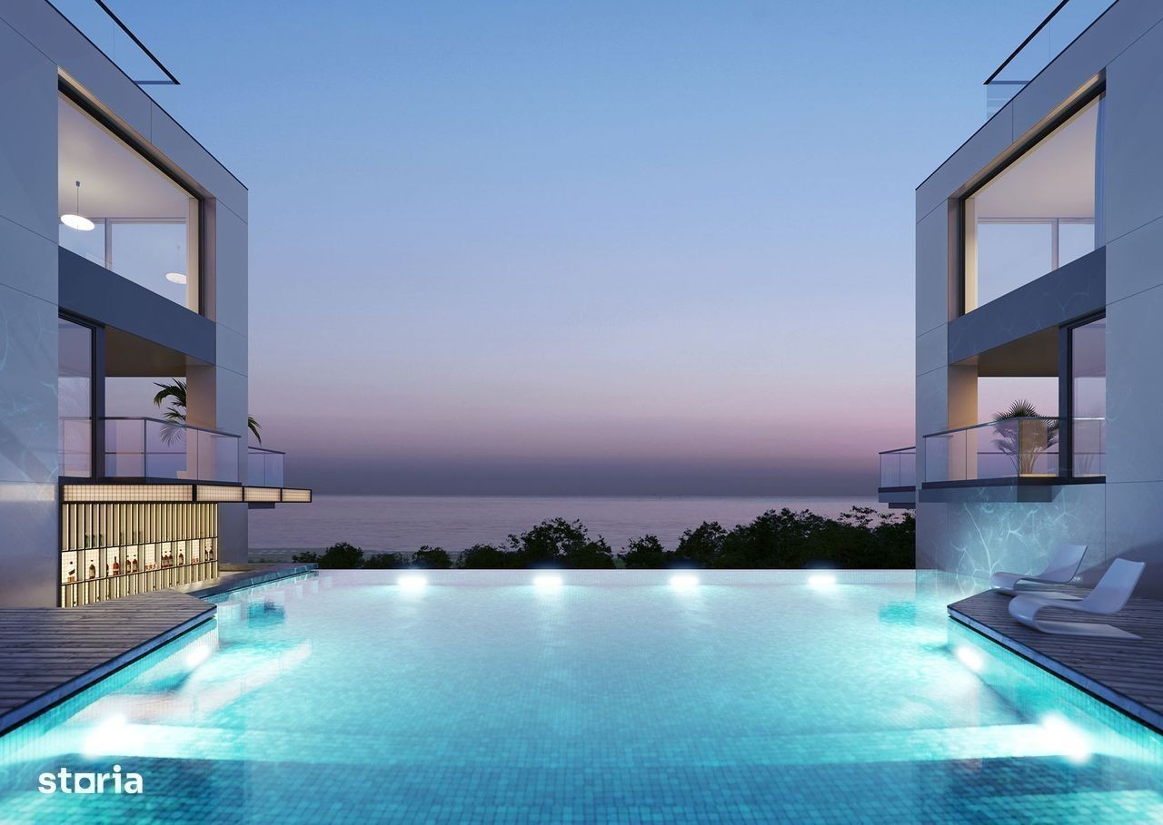 Vă propun spre vânzare un apartament cu 2 camere, de vacanță, situat în prestigiosul complex Vogh Olimp, finalizat în octombrie 2023. Proprietatea se află la etajul 3, are vedere directă la mare și o suprafață totală de 75,2 mp. Apartament nemobilat, finisat modern (parchet, uși filomuro, termopane cu ventilație, băi complet utilate)