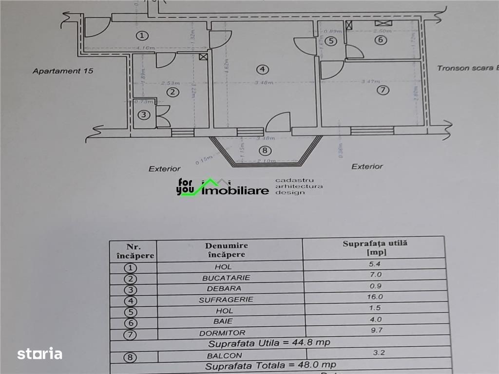 Agentia imobiliara For You Bacău, vă propune spre vanzare, un apartament cu 2 camere semidecomandat, situat pe strada 22 Decembrie, in apropiere de magazinul Profi, intersecția cu strada Logofăt Tautul, intr-un imobil construit in anul 1980, la etajul 3 din 4, cu o suprafata de 48 mp, cu bucătărie mare, grup sanitar fara geam, dotat cu centrala, termopane, izolat exterior cu polistiren de 10 cm, cu boxa la subsol. Imobilul este situat in apropiere de piata,10 minute de mers pe jos, statie RATB, scoli, gradinita. Necesită renovare generală și prețul este ușor negociabil. Se accepta și achiziționarea cu credit. Pentru detalii suplimentare, precum si pentru stabilirea unei vizionari, va stam la dispozitie la sediul agentiei, situat pe str. Mihai Viteazul nr.1, deasupra restaurantului Viva, intrarea dispre piata mare, et.1. ID intern: 431.