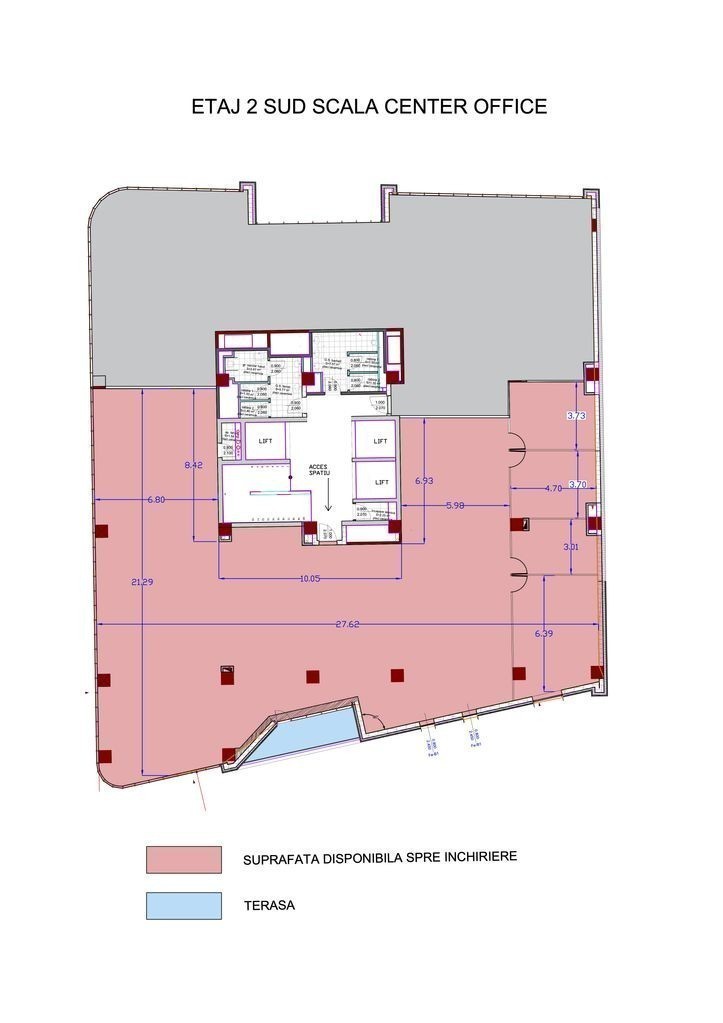 Spațiu de birouri de 532,26 mp GLA aflat la etajul 2 în clădirea de birouri de clasa A "Scala Center" de pe strada Someșului 34-36. Spațiul include o terasă de 12,15 mp și compartimentare, cu 3 săli de ședințe, o bucătărie și spațiu pentru aproximativ 45 de birouri individuale. Spațiul este dotat cu sistem HVAC și climatizare din podea.