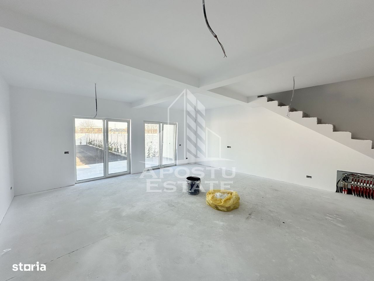 APOSTU ESTATE va propune spre vanzare o jumatate de duplex cu 5 camere in Dumbravita. Regim de inaltime P+1E imobilul se intinde pe o suprafata utila de 128 mp si pe o suprafata de teren de 430 mp. Compartimentare: La parter: -Hol de acces cu loc pentru dressing; -Living; -Bucatarie deschisa cu locul de luat masa; -Birou/Dormitor; -Baie; -Terasa de 19 mp; Etaj: -Un dormitor cu baie proprie; -2 dormitoare; -Baie; -Hol de acces; Detalii tehnice: -incalzire in pardoseala; -dispune de toate utilitatile; -strada asfaltata si iluminata; -supraveghere video; -curtea amenajata inclusa in pret; -termostat individuala; Oferim consultanta si solutii financiare prin colaboratorii nostri. Va invitam cu drag la o vizionare! CP2266181