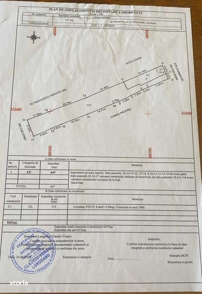 Vand casa 115 mp, constructie 1960, + teren aferent 532 mp situat in Str.Dumbravei, Pitesti. Total teren+casa=647mp. Detin cadastru (2024). Deschidere la strada Dumbravei 9,14m.