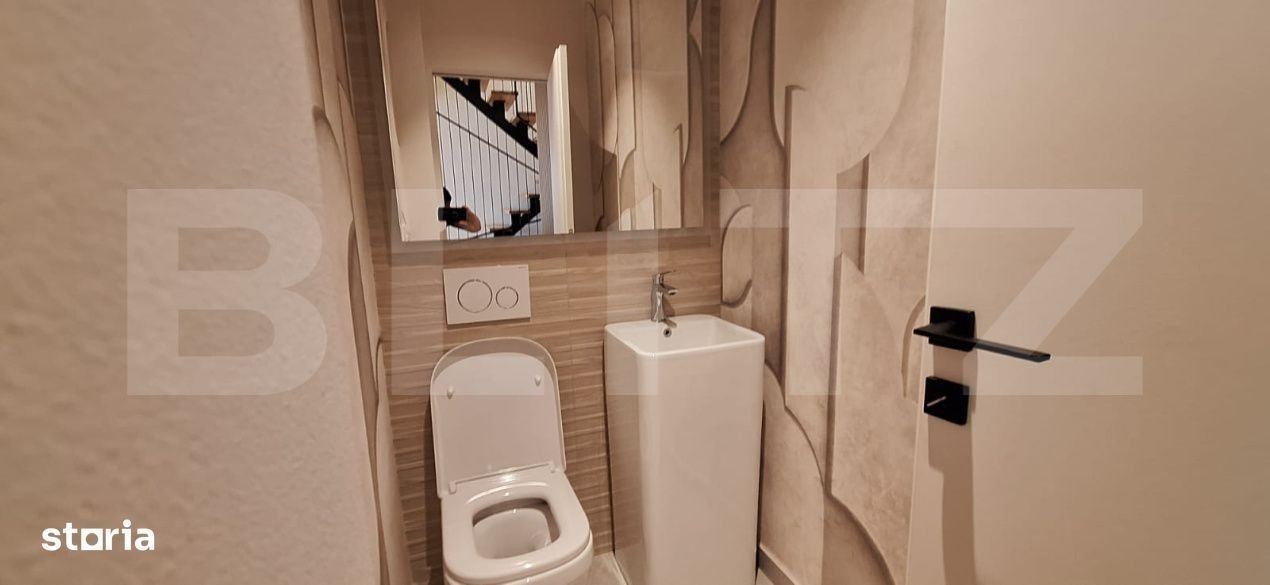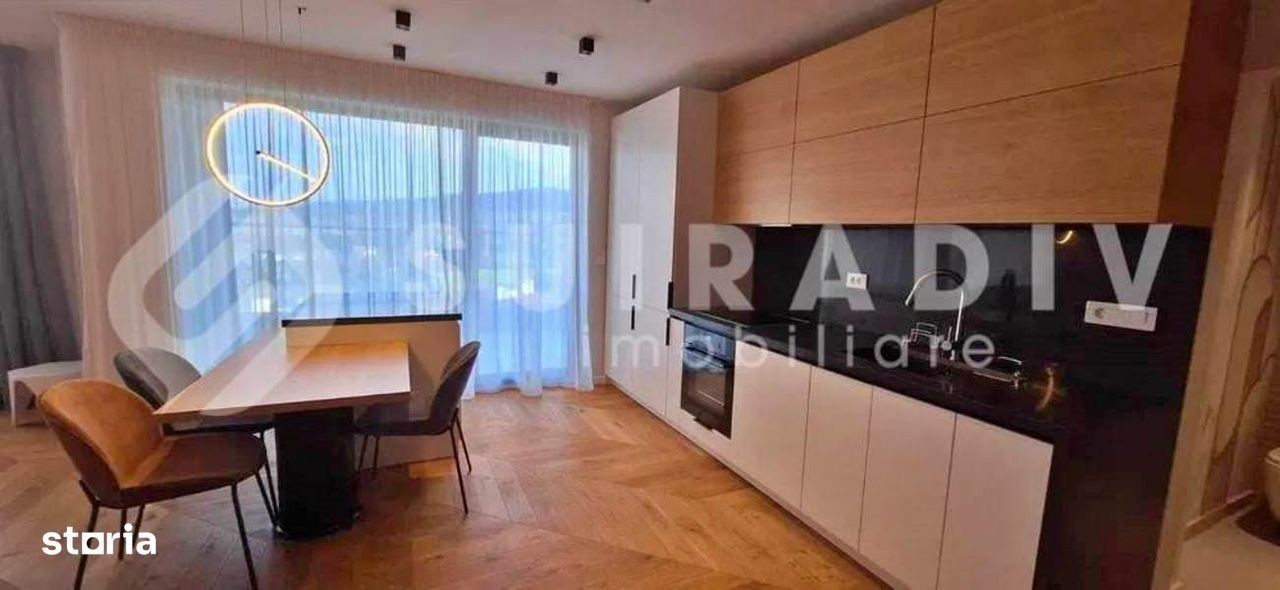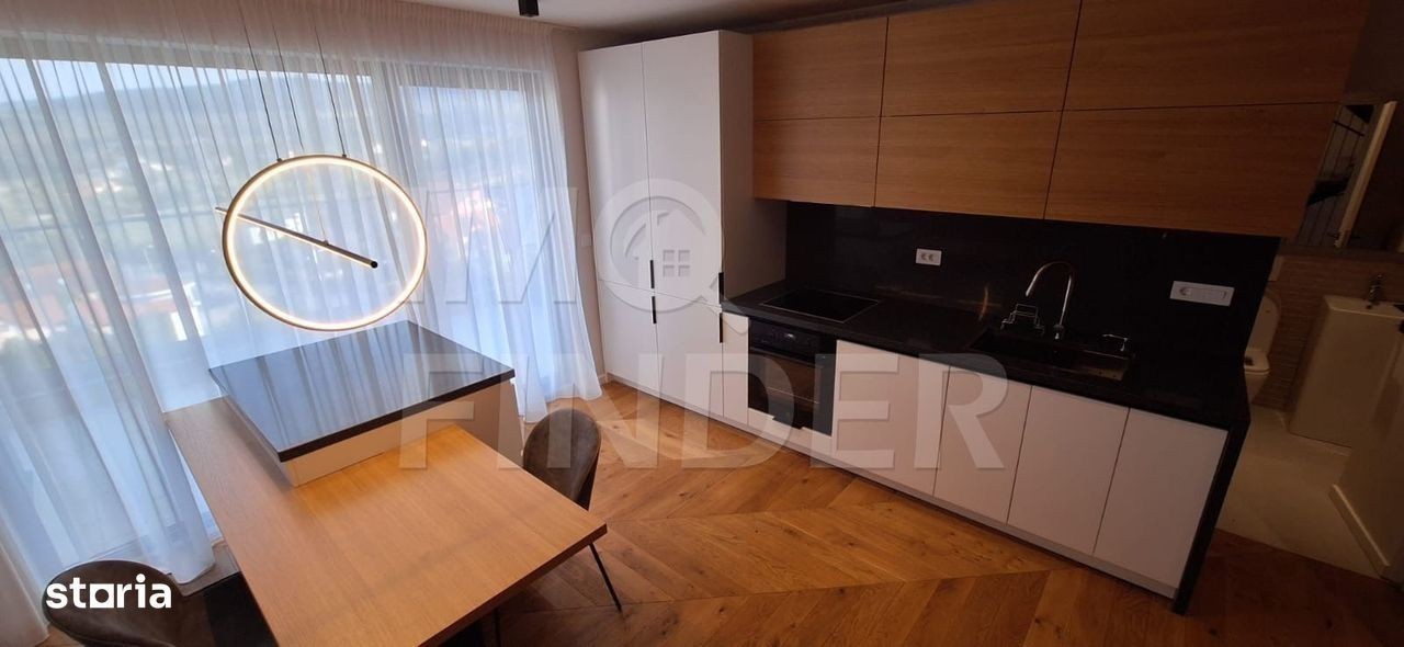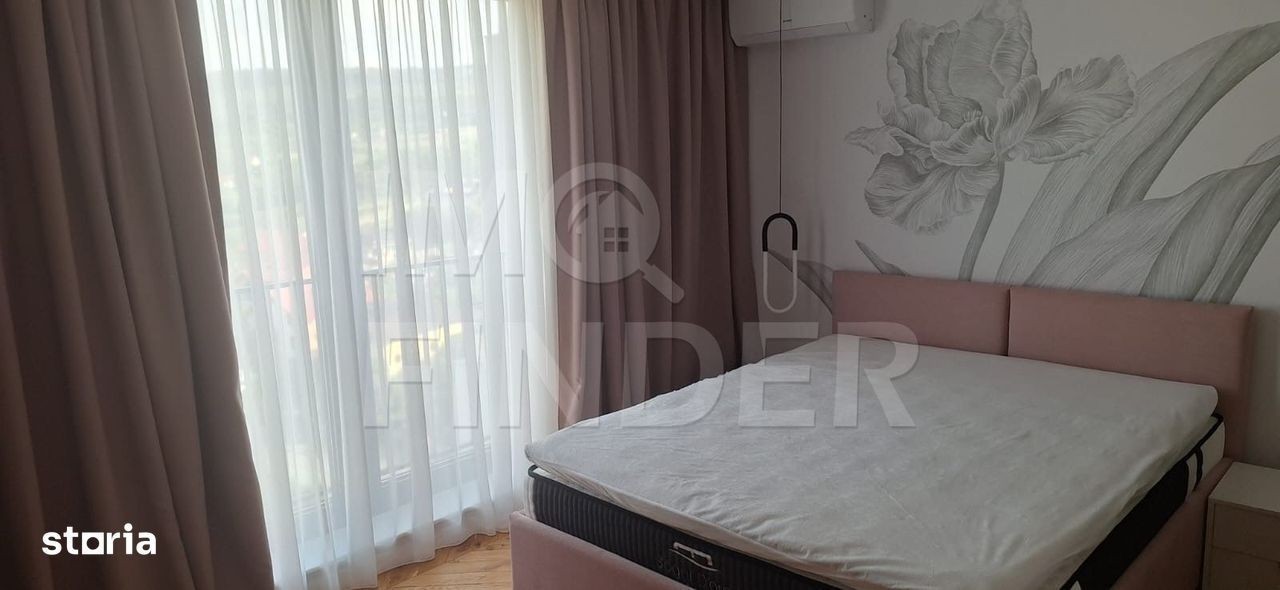 Va prezint un apartament de lux situat pe strada Mi hai Romanul, cartier Buna Ziua, etajul 8+9, cu scara interioara, cu terasa mare, orientare estica, ideal pentru cei care cauta confort, rafinament si o locatie linistita. Proprietatea are o suprafata de 95 mp si o terasa de 14 mp ce ofera o priveliste frumoasa spre zona de case. Este complet mobilata si utilata cu electrocasnice de ultima generatie fiind pregatita pentru mutare imediata. Caracteristici principale: - camere spatioase si luminoase - living generos cu acces la terasa - aparat de aer conditionat in fiecare camera - bucatarie open space complet mobilata - dormitoare cu pat matrimonial si spatii ample de depozitare - bai moderne, spatioase, finisate cu materiale premium - parcare subterana incluse in pret Apartamentul are urmatoarea configurare: - la primul etaj gasim o bucatarie open space cu loc de luat masa, un living generos, baia de serviciu, spatiu de depozitare sub scara si iesirea pe balcon - la etaj avem doua dormitoare, fiecare dormitor are baie proprie, iar unul din dormitoare are si un dressing. Apartamentul este situat intr-un bloc nou, avand un parc amenajat si loc de joaca pentru copii. Pretul este de 1.500 euro.