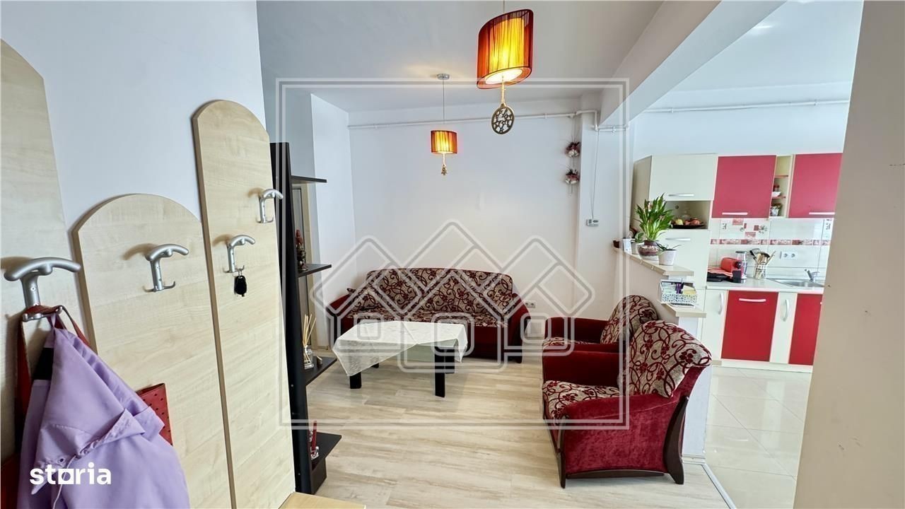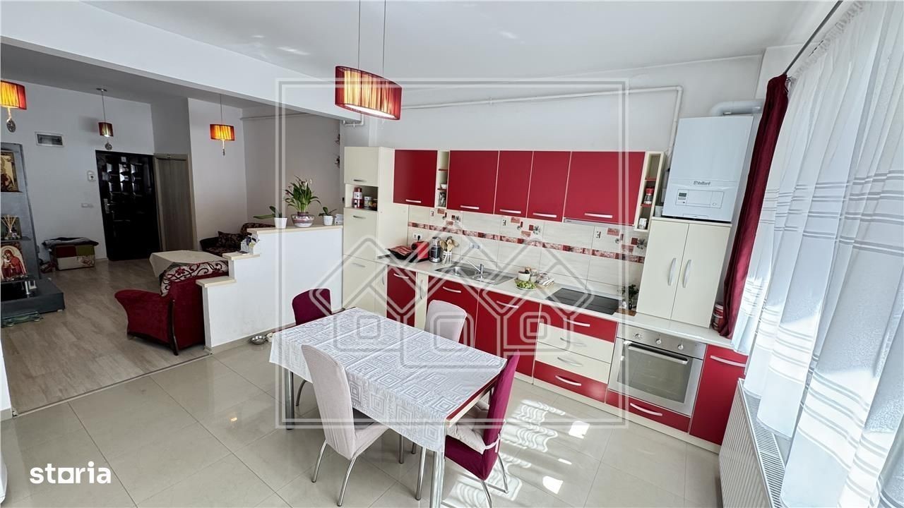 Apartament 3 Camere | Mobilat + Parcare | Balcon | Turnișor - Sibiu Zonă liniștită - Turnișor, aproape de Zona Industrială Vest, Aeroport și autostradă Suprafață utilă: 71 mp + balcon 4,62 mp Loc de parcare inclus în preț Compartimentare practică: • Hol de acces • Living open space cu bucătărie • 2 dormitoare luminoase • Baie cu geam (ventilație naturală) • Balcon spațios Apartament complet mobilat și utilat - gata de mutat! Avantaje cheie: • Parter în bloc cu 4 etaje - acces ușor • Intabulat - disponibil imediat • Zonă aerisită, cu acces rapid către toate punctele de interes • Transport în comun, magazine, grădinițe și școli în apropiere • Ideal pentru familie sau investiție Se acceptă plata cash sau prin credit ipotecar Programează o vizionare!