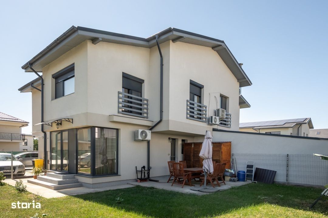 Imaginează-ți cum ar fi să locuiești într-o casă unde lumina naturală, spațiul și confortul modern se îmbină perfect pentru a-ți oferi un cămin în care să te simți cu adevărat acasă. Această vilă duplex, finalizată în 2022, îți oferă nu doar 96,40 mp utili și un teren generos de 296 mp, ci și șansa de a te bucura de un stil de viață relaxat și sigur, într-o comunitate tânără și prietenoasă. Compartimentare inteligentă Parterul te întâmpină cu un living spațios, gândit pentru seri relaxante alături de familie și prieteni, completat de o bucătărie semi-deschisă și o baie de serviciu. Etajul include două dormitoare luminoase, o baie modernă și un birou de 8,30 mp - ideal pentru lucrul remote sau transformat într-un dormitor suplimentar pentru cei mici. Confort și dotări premium Încălzire în pardoseală pentru un confort termic uniform Două aparate de aer condiționat pentru verile călduroase Rulouri exterioare la ferestre pentru siguranță și intimitate Sistem automat de irigație pentru o grădină mereu verde Loc de parcare propriu și acces securizat în complex Locație strategică Acces rapid la centura Bucureștiului și către nordul Capitalei În imediata apropiere de Lidl, Penny și mijloace de transport La câteva minute de cele mai bune școli internaționale: Școala Britanică București (BSB) Școala Americană Internațională (AISB) Mark Twain International School Comunitate tânără, activă, unde copiii se joacă în siguranță și vecinii devin prieteni Această proprietate este de vânzare și reprezintă mai mult decât o simplă casă - este locul unde îți construiești amintirile, crești familia și te bucuri de liniște, dar și de acces rapid la tot ce contează. Dacă visezi la un cămin modern, într-o zonă verde și bine conectată, această vilă din Tunari te așteaptă.