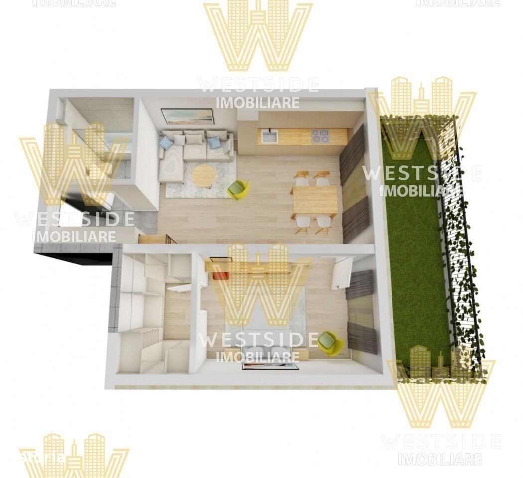 Westside Imobiliare Apartament modern de vânzare cu 2 camere - 54 mp + grădină 22 mp - zona Fridorf, Timișoara Westside Imobiliare vă prezintă spre vânzare un apartament elegant și confortabil, situat într-o zonă apreciată din Timișoara - Fridorf, cu o suprafață utilă de 54 mp și o grădină proprie de 22 mp, accesibilă atât din living, cât și din dormitor. Compartimentare interioară: Living cu bucătărie open space, luminos și spațios, ideal pentru momente de relaxare sau socializare; Dormitor confortabil, cu acces direct în grădină Baie modernă, finisată cu materiale de calitate; Grădină de 22 mp, perfectă pentru relaxare sau activități în aer liber. Dotări și facilități premium: Acest apartament beneficiaza si de panouri fotovoltaice ceea ce reduce costuriile la energie Finisaje moderne, elegante și durabile; Spații luminoase și bine compartimentate; Locuință pregătită pentru mutare imediată. Avantaje: Apartament la parter, cu grădină proprie, pentru intimitate și relaxare; Locație excelentă, într-o zonă liniștită și accesibilă din Timișoara; Ideal pentru un cuplu, familie mică sau ca investiție sigură; Design modern, funcțional și confortabil. Vă așteptăm la vizionare! Nu ratați oportunitatea de a vă bucura de confortul unui apartament modern, cu grădină privată! Contactați-ne pentru a programa o vizionare și descoperiți personal această locuință premium. Pretul afisat are TVA de 21% inclus! Detalii terase: Apartamentul are curte sau gradina Individuala