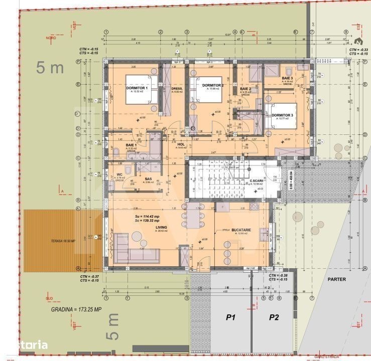 Apartament de lux 115 mp utili 4 camere 4 bai curte privata 200 mp
