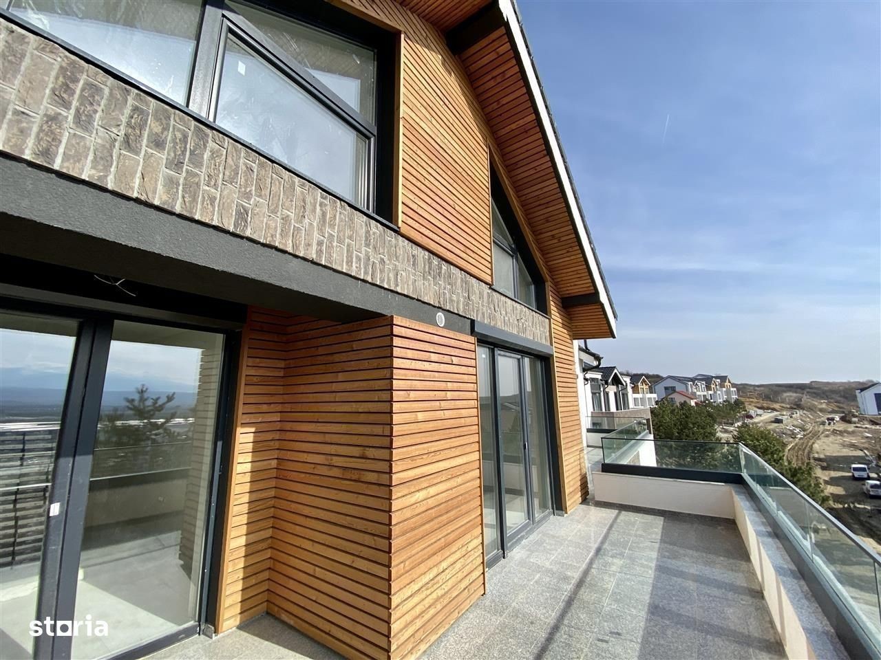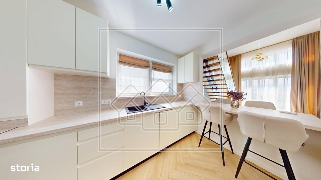 Penthouse de vanzare in Sibiu - 5 camere, 3 bai, mobilat si utilat complet - Ansamblu DaVinci Homes Detalii apartament: - Suprafata utila: 118,48 mp - Logie: 10,75 mp - Compartimentare pe 2 niveluri: living luminos, zona de dining, bucatarie separata, 3 dormitoare (unul matrimonial cu dressing), 3 bai moderne, scara interioara din lemn cu balustrada din sticla securizata. - Predare: finisat la cheie, complet mobilat si utilat (inclusiv aer conditionat). Avantaje: - Design modern, mult spatiu si lumina naturala prin ferestre mari si logii cu orientare sudica - Mobilier si finisaje premium - Incalzire in pardoseala, centrala in condensatie, izolatie cu vata bazaltica, tamplarie PVC cu 3 foi de sticla, jaluzele electrice - Eficienta energetica ridicata - Priveliste panoramica spre munti - Locuri de parcare incluse - 4 intrari si iesiri, drumuri pavate, locuri de joaca pentru copii - Cartier modern, linistit, bine organizat Locatie: Ansamblul rezidential DaVinci Homes - zona de Vest a orasului Sibiu, cu acces rapid catre principalele artere.