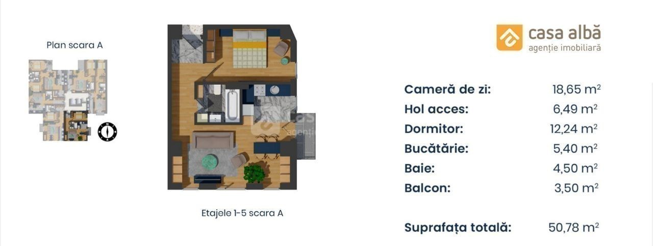 COMISION 0! Agentia Imobiliara Casa Alba va ofera sprijin pe tot parcursul tranzactiei! Va prezentam un proiect rezidential situat in Pacurari - Alpha Bank - Munca Invalizolor, la 300m de Kaufland Pacurari, aproape de mijloacele de transport în comun. In imediata apropriere găsim supermarket-uri, farmacii, magazine comerciale, unități de învățământ: grădinițe, școli, si licee. Ansamblul vine în întâmpinarea dorinței de a locui într-o zonă selectă, mai aproape de natură însă nu departe de tot ceea ce face traiul facil, fiind poziționat strategic la 15 minute de Palas Mall, la 6 minute de Universitatea Alexandru Ioan Cuza, 10 minute de universitatea de Medicină și Farmacie „Grigore T. Popa” și la 6 minute de zona Copou. Proiectul cuprinde un ansamblu de apartamente cu 1, 2, 3 si 4 camere, dispuse la etajele 1-8, parcare subterană la subsol, iar la parter sunt amplasate spații comerciale și birouri. Complexul este construit pe 3 scări, este rezistent la cutremure de peste 8.5 grade pe scara Richter, fapt ce denotă atenția acordată realizării proiectului și grija pentru siguranța și confortul viitorilor proprietari. Tronsoanele sunt construite pe cadre din beton, cu zidarie 100% cărămidă, cu locuri de parcare subterane pentru fiecare apartament. Complexul va beneficia de loc de joacă pentru copii si spații verzi cu brazi și copaci ornamentali. Apartamentul propus are 2 camere, model decomandat open space living + bucataria si dormitor separat, are suprafata de 50.78mp (47.3mp utili + 3.5mp balcon), este orientat Sud-Est, iar pretul solicitat pentru acesta este de 113.362 euro, la plata cash. Apartamentul se va preda LA CHEIE, racordat la toate utilitatile, in 2025! Exista posibilitatea alegerii finisajelor, in bugetul de 120 lei/ mp si contractarea boxelor si locurilor de parcare, contracost. In complex, mai sunt disponibile si alte modele de apartamente cu 2 camere. Avantaje complex: * Certificat de performanta energetica Clasa A! * Stații de încărcare auto - parcarea subterană dispune de 6 spații dedicate pentru încărcarea autovehiculelor electrice * Încălzire în pardoseală in toate camerele * Sistem SmartHome - utilitatile din apartamente pot fi controlate de la distanta * Punct de ridicare EasyBox - Toate comenzile tale ajung la tine acasă chiar dacă nu ești acasă! Cu sistemele EasyBox situate la parterul blocului, puteți să faceți cumpărături online fără grijă că nu vă găsește curierul acasă * Parcare subterana spatioasa cu supraveghere video * Spatiu verde - Tot complexul este înconjurat de spațiu verde amenajat cu bun gust si care îți conferă liniștea naturii în apropierea orașului * Lifturi performante si silentioase Schindler * Aer conditionat inclus - Toate apartamentele din complex sunt dotate cu aparate de aer condiționat de mare putere și foarte silențioase * Loc de joacă - Complexul beneficiaza de un spațiu de joacă amenajat cu pardoseală elastică! * Băi complet mobilate si echipate * Ferestre cu izolare fonică - Geam izolant cu 3 sticle de grosime 40mm, 4s+float+low-e + argon Pentru informatii suplimentare, va rugam sa contactati consultantul imobiliar Mihai Rusu, sau sa accesati COD OFERTA 1512199.