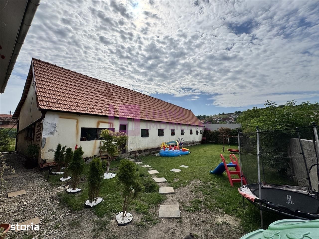 Casa INDIVIDUALA de vanzare in Sibiu - Sura Mare - moderna, mobilata si utilata! Luana Imobiliare Sibiu va prezinta la vanzare o casa PE UN SINGUR NIVEL localizata la doar 4 km de Sibiu, in localitatea Sura Mare ! Descopera o locuinta compartimentata inteligent, pregatita sa iti ofere tot confortul de care ai nevoie. Casa de vanzare are suprafata utila 180 mp si suprafata teren 701 mp, curtea libera fiind de aprox. 350 mp. In curte mai este o constructie - o anexa cu suprafata construita de 128 mp, la stadiul de gri avansat, avand acoperisul schimbat integral. Casa este construita pe un singur nivel si este compartimentata astfel: Parter: antreu, living cu bucatarie open-space de 80 mp, dormitor matrimonial cu baie si dressing (camera copil), birou dormitor de 25 mp, baie, debara si spalatorie. Cu acces din zona de zi este terasa acoperita in suprafata de 30 mp. Deasupra casei este pod, ideal ca spatiu de depozitare, izolat termic. In plus, exista posibilitatea de mansardare. Mod de predare: Casa se preda finisata la cheie, mobilata complet si utilata complet, incluzand: bucatarie mobilata complet, living, dormitoare si bai amenajate. Electrocasnicele moderne - masina de spalat rufe, uscator de rufe (industriale), cuptor, plita, hota, frigider si masina de spalat vase - sunt deja incluse. Casa a fost renovata complet pe interior in anul 2023. Tamplaria PVC a fost schimbata si s-au montat geamuri cu sticla securizata antifonice, antifurt, cu rulouri electrice si plase de tantari. Incalzirea se realizeaza cu ajutorul centralei termice pe gaz si cu calorifere. Pentru eficientizarea energetica sunt montate panouri solare cu baterie de stocare de 5kw. Instalatia electrica a fost complet refacuta cu ocazia renovarii. Curtea are acces auto si se pot parca doua autoturisme. Localizare: Casa de vanzare este situata in vatra comuneim intr-o zona frumoasa de deal, cu priveliste superba, la doar 4 km de zona Obor. In apropiere este centrul comercial Prima si accesul spre autostrada. De asemenea, in localitate este supermarket, scoala, gradinita, farmacie si mijloace de transport in comun. Puncte forte: - casa individuala pe un singur nivel - renovata in 2023 - teren 701 mp - 2 bai - terasa acoperita 30 mp - panouri solare cu baterie - tamplarie PVC cu sticla securizata antifonice, antifurt - rulouri electrice cu plase de tantari - localizata in vatra comunei. ID intern: 1362.