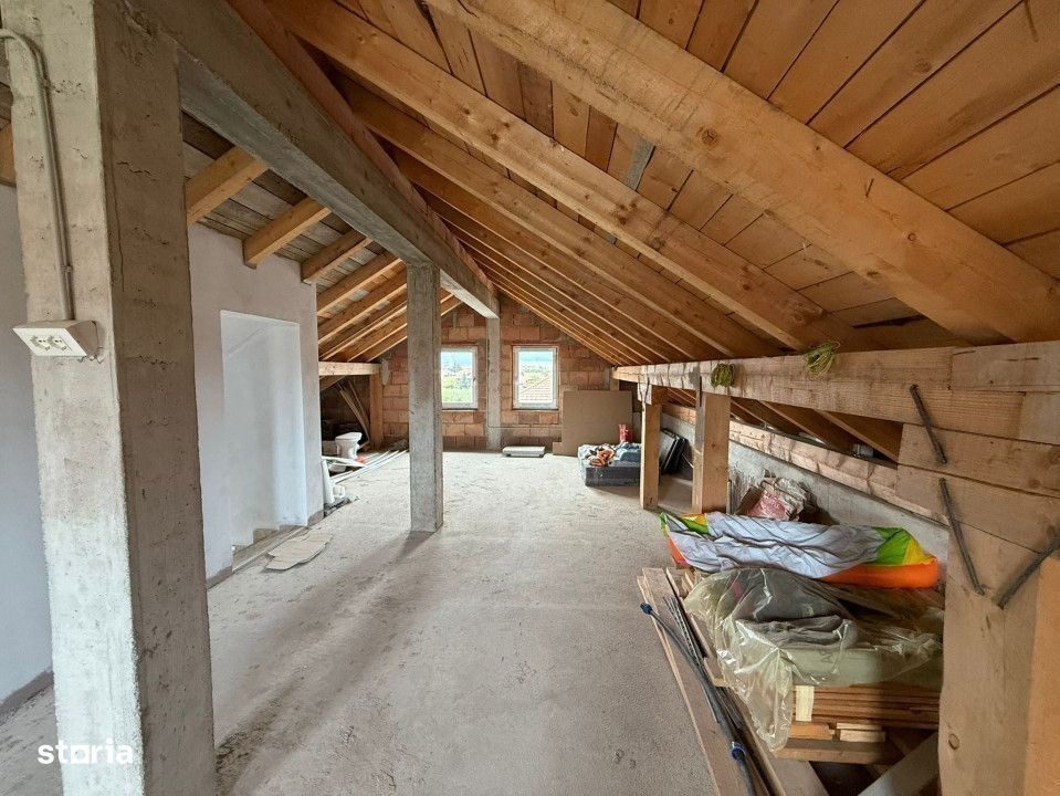 Casă individuală nouă - 4 camere 126 mp utili + teren 521 mp, Cristian Situată în Cristian, jud. Sibiu, într-o zonă de construcții noi, cu acces asfaltat și toate utilitățile esențiale la poartă. Detalii proprietate: - Suprafață utilă 126 mp (fără mansardă) - Teren de 521 mp (442 mp curte liberă), deschidere generoasă de 16 m, acces din două străzi - An construcție 2021 - Structură cu fundație beton, pereți din cărămidă, acoperiș din țiglă, termoizolație cu polistiren Compartimentare: • Parter - living spațios, bucătărie separată, baie, hol și spațiu tehnic • Etaj - 3 dormitoare (unul cu dressing), baie și balcon • Mansardă - placă de beton, pregătită pentru amenajare ulterioară Stare actuală: - Exterior finisat la cheie - Interior: necesită finisare (oportunitate de personalizare după gustul viitorului proprietar) Curte neamenajată, dar cu potențial excelent pentru grădină, foișor sau spații de relaxare Gard și poartă nefinalizate. Utilități: apă, curent, canalizare. Încălzire prin centrală pe peleti + boiler electric. Certificat energetic clasa A. Avantaje: - Zonă liniștită cu acces rapid spre Sibiu - Casă individuală, nu duplex - Certificat energetic clasa A → costuri reduse de întreținere - Mansardă cu potențial de extindere - Teren mare, acces dublu la stradă Preț: 185.000 Euro *se poate achizitiona cu credit bancar sau din surse proprii Programează acum o vizionare și transformă acest apartament în noua ta locuință sau într-o investiție inspirată.