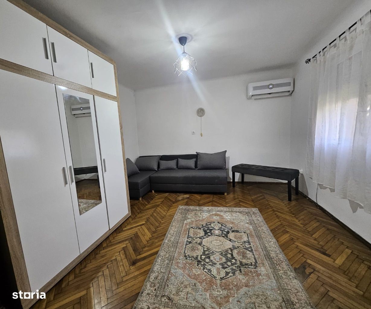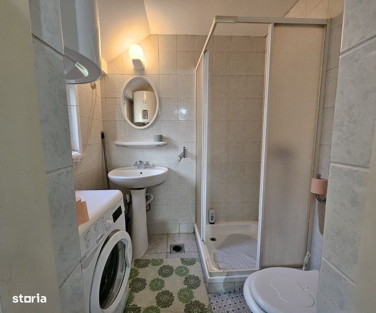 Apartament cu 1 camera, ultracentral, de vanzare, cu 1 singur vecin in curte. Apartament la casa cu 1 camera de vanzare situat in zona centrala, mai exact pe strada Simion Stefan din Oradea. Apartamentul este situat la casa si detine o mica curte, cora parte de 118 mp din curte. Apartamentul este dispus pe o suprafata utila de 35 mp compus din bucatarie complet mobilata și utilata, camera dormitor, 1 baie cu zona dus si o camera de zi amenajata ca loc de luat masa.