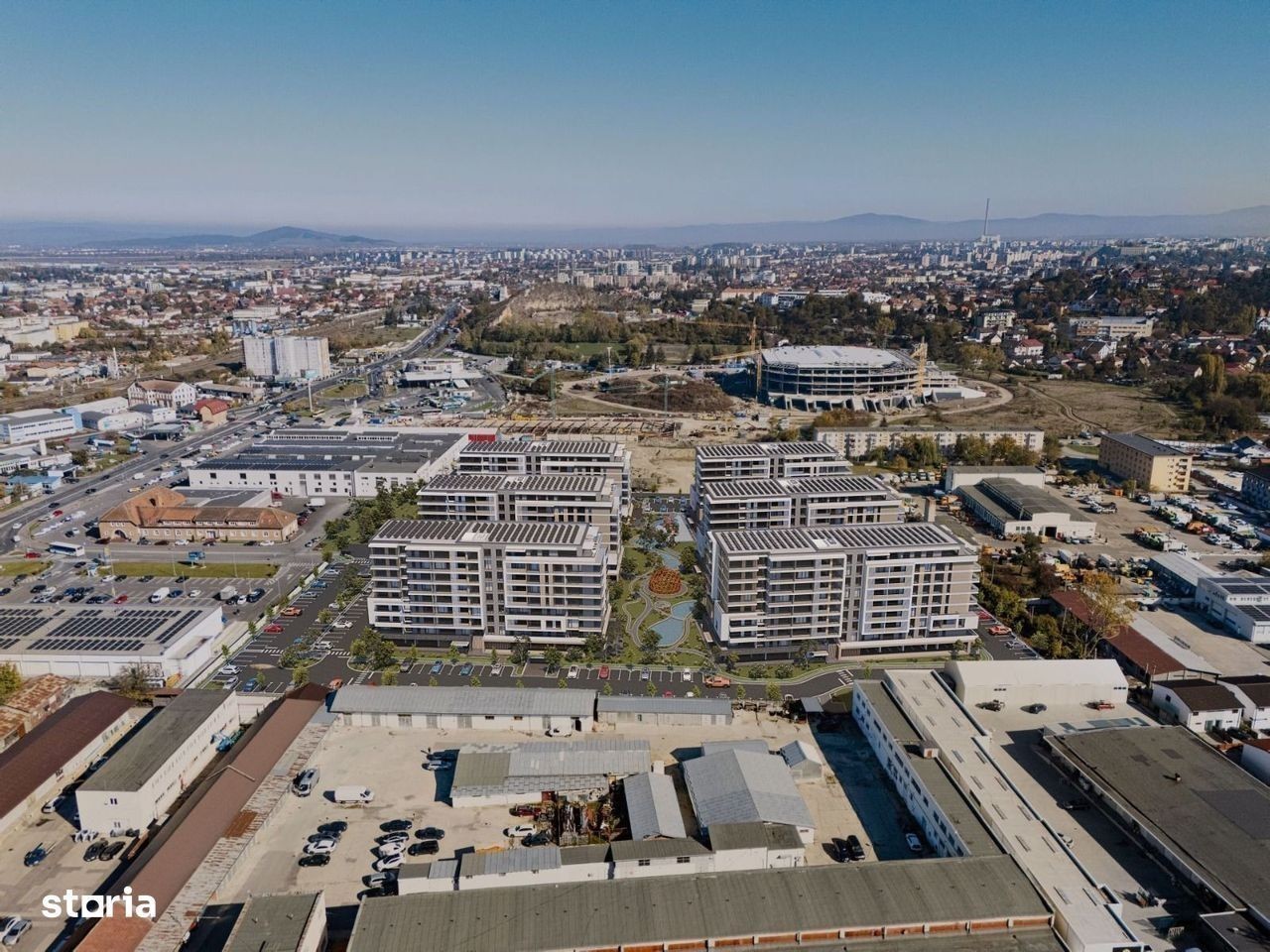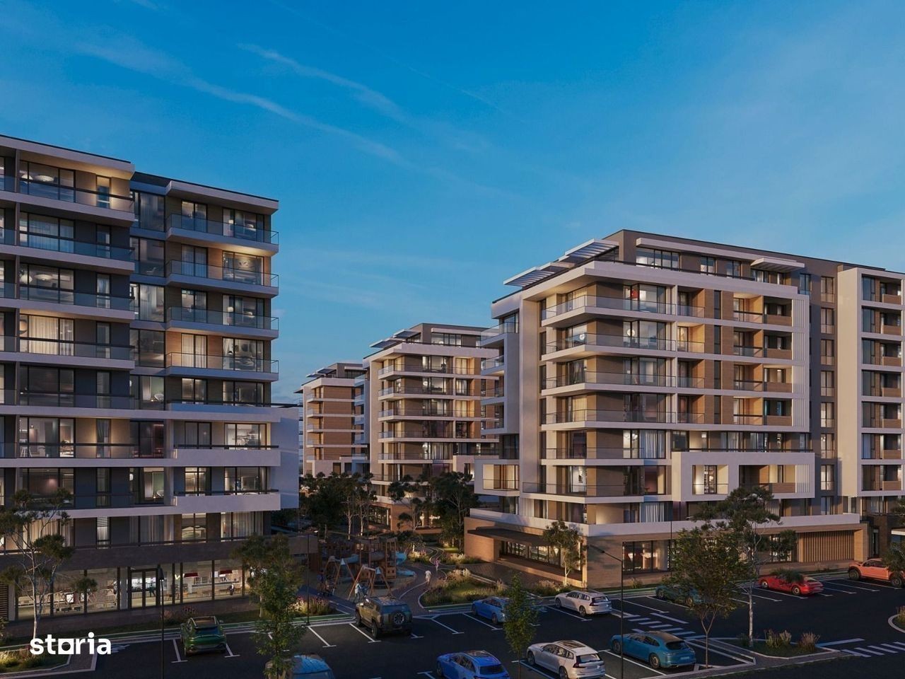 Vă prezentăm Alpha Distrikt, un ansamblu rezidențial dezvoltat în zona Bartolomeu, Brașov. Proiectul redefinește locuirea urbană, oferind un stil de viață modern, conectat la dinamica orașului, la facilitățile unei comunități complete și la tehnologia viitorului. Ansamblul este compus din șase clădiri cu un regim de înălțime de P+8E și S+P+8E ce va însuma 564 de apartamente și 14 spații comerciale la parter. Primele două imobile au ca termene de finalizare 30 septembrie 2026 (Blocul 1) și 31 iulie 2027 (Blocul 2). Proiectul oferă o gamă variată de locuințe, de la studiouri și până la apartamente cu 2, 2.5, 3 și 4 camere, potrivite pentru diverse nevoi. Spre exemplu, apartamentele cu 4 camere sunt disponibile în varianta cu suprafeța utilă de 123 mp, la care se adaugă suprafața balconului de 49 mp. Fiecare tip de apartament este proiectat pentru a maximiza funcționalitatea și spațiul. Locuințele se predau cu finisaje de calitate, atent selecționate pentru durabilitate și estetică. Pardoselile din camere sunt din parchet SPC, un material compozit recunoscut pentru rezistența la uzură și compatibilitatea cu încălzirea în pardoseală. Băile sunt finisate cu gresie și faianță și se predau complet utilate cu obiecte sanitare. Eficiența energetică este un pilon al proiectului. Ansamblul este dotat cu panouri fotovoltaice ce reduc semnificativ costurile la utilitățile comune. Confortul este asigurat de sistemul de încălzire prin pardoseală (deservit de o centrală termică de imobil cu contorizare individuală), de ferestrele cu trei foi de sticlă și cinci camere de aer pentru o izolare superioară, și de un sistem de climatizare multi-split deja montat. Fiecare apartament dispune de pregătire pentru soluții de tip smart home, ce permit controlul facil al temperaturii și al videointerfonului. Suplimentar, proiectul oferă posibilitatea de a achiziționa locuri de parcare exterioare (unele cu pregătire pentru stații de încărcare auto), subterane, precum și boxe pentru depozitare. Ansamblul este proiectat pentru a susține un stil de viață complet, oferind rezidenților acces la multiple facilități: piscină interioară, spații dedicate pentru fitness, zone verzi, locuri de joacă pentru copii și spații de socializare. Amplasat în vestul Brașovului, ansamblul beneficiază de acces facil la o infrastructură completă: școli (Gimnazialele 12 și 14), grădinițe, supermarketuri (LIDL, Auchan), centre de agrement precum Paradisul Acvatic și Sala Polivalentă, cluburi sportive pentru copii (Brașovia, Dinamo Brașov, Kame Judo), dar și la noduri de transport majore, incluzând Terminalul Municipal, Gara Bartolomeu și Aeroportul Internațional Ghimbav. Pentru mai multe detalii, prețuri și programarea unei vizionări, vă rugăm să ne contactați. Comisionul pentru cumpărători este 0%.