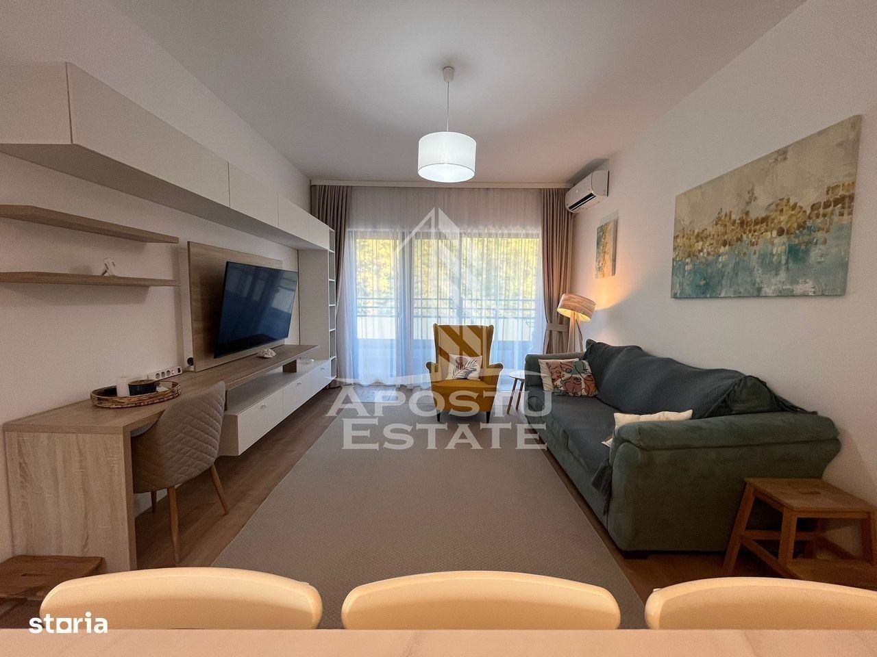 Apostu Estate vă oferă o oportunitate rara de inchiriere: apartament spatios si luminos, aflat la etajul 2 al unui imobil cochet (P+2E) in, Dumbravita - la marginea padurii, intr-o zona linistita si exclusivista, langa Adora Forest. Suprafata utila: 70 mp Terasa: 17 mp cu priveliste superba catre padure, accesibila din doua zone diferite - perfecta pentru relaxare si seri linistite. Compartimentare inteligenta: • Hol cu spatiu de depozitare si dressing • Living modern open-space cu bucatarie complet echipata • Dormitor matrimonial cu baie proprie • Dormitor secundar luminos • Baie principala cu dus • Terasa generoasa cu vedere directa spre natura •. Baie de serviciu Dotari si finisaje: • Apartament aflat la prima inchiriere • Mobilier realizat la comanda din MDF vopsit, design modern si functional • Electrocasnice premium • Incalzire in pardoseala cu centrala termica proprie • Sistem performant de climatizare • Filtru de apa montat recent • Cladire dotata cu iluminator central si spatiu special amenajat pentru biciclete Avantaje suplimentare: • Se inchiriaza complet mobilat si utilat • 3 locuri de parcare dedicate - un beneficiu rar in zona • Localizare excelenta: aproape de Complexul Bega Lipovei si Kaufland Dumbravita, dar in acelasi timp retras si linistit Chirie: 800 euro/luna + garantie Un apartament ideal pentru cei care isi doresc confort modern, intimitate si acces direct la natura. Programează o vizionare ! Cp:2692769 Preț; 800 eur negociabil