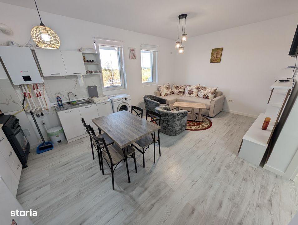 Va oferim spre achizitie fara comision un apartament modern, mobilat si utilat cu o suprafata utila de 40mp si o gradina de 20 mp. Apartamentul este localizat in Tunari in complexul City Nord. Se vinde complet mobilat si utilat; nu a fost niciodata locuit. Asa cum v-am obisnuit: - toate ofertele Monga Imobiliare sunt fara comision din partea cumparatorului - pentru ca iubim transparenta, toate preturile afisate de Monga Imobiliare includ TVA (daca se aplica). Pretul afisat de noi este intotdeauna pretul final pe care il vei achita. Acceseaza Monga Imobiliare (Monga RO) pentru mai mai multe poze si pentru intreg portofoliul nostru de case si apartamente din Otopeni, Tunari, Balotesti, Corbeanca, Pipera si chiar nordul Bucurestiului. Atat apartamentul cat si complexul au fost amenajate cu materiale de calitate, cu o foarte buna izolatie terminca si fonica. Curtea proprie va permite sa va bucurati de momente de relaxare in curtea proprie. Apartametul permite acces usor catre aeroportul Otopeni, dar si catre Pipera si nordul Bucurestiului. Este amenjat incat permite mutarea imediata, dar este ideal si ca investitie pentru inchiriere la randamente avantajoase. Despre spatiu: Intrare se face catre un open space cu rol de living, dining si bucatarie. De aici se aceseaza zona de dormit accesibila printr-un hol ce comunica cu baia si dormitorul. Din dormitor se acceseaza gradina. Pretul include si un loc de parcare. Apartamentul beneficiaza de centrala proprie cu incalzire prin pardoseala. Despre ansamblul rezidential: Dezvoltat la standarde ridicate de calitate dispune de: loc de joacă pentru copii, farmacie, cafenea, Pizzerie si, in curand, un supermarket. Despre locatie: Este amplasat într-o zonă cu o infrastructură excelentă cu acces la mijloace de transport în comun, centre comerciale şi instituţii de învăţământ. Acces facil catre Otopeni, Pipera, nordul Bucurestiului, Aeroport, DN1, A0, centura Bucuresti, numeroase centre comerciale. Apartamentul este perfect pentru o persoana sau un cuplu dar poate fi achizitionat si ca investitie (poate fi inchiriat fara nici un cost suplimentar). Apeleaza cu incredere la Monga Imobiliare. Suntem alaturi de tine pana la finalizarea tranzactiei si te ajutam sa treci cu incredere si in cunostinta de cauza prin toti pasii necesari. Te putem ajuta in pregatirea documentelor, selectia notarului, obtinerea finantarii, si altele. Te asteptam sa ne contactezi.