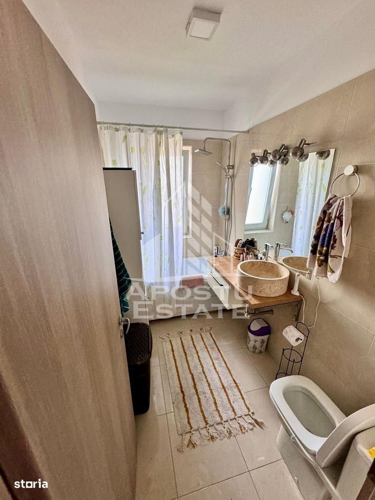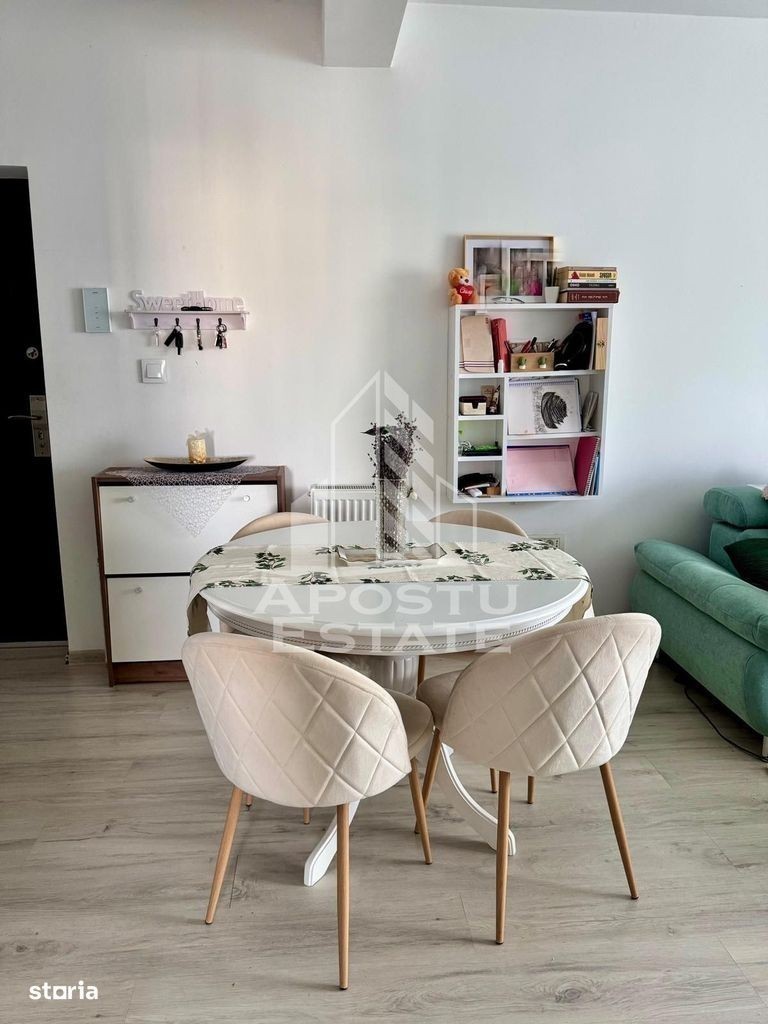 Apostu Estate va propune spre vanzare un apartament cu 2 camere, situat intr-o zona linistita, aproape de Zone 2 si cu acces rapid la centura de sud a Timisoarei. Compartimentare: • living cu zona de dinning • bucatarie inchisa • hol de trecere • dormitor • baie cu cada • balcon Detalii suplimentare: • Suprafata utila: 52,21 mp • Balcon: 5 mp • Mansarda proprie: aprox. 40 mp utili • Loc de parcare inclus in CF Dotari: • Mobilier pe comanda (living, bucatarie, dressing 3m in dormitor) • Electrocasnice: plita inductie, hota, cuptor electric, cuptor microunde, frigider, masina de spalat vase si rufe • Aer conditionat Vecinatati: Mega Image, Profi, gradinita, farmacii, easybox, Zone 2, acces facil catre AEM/Continental si Buziasului. O locuinta moderna si functionala, ideala pentru o familie sau un cuplu. CP2699746
