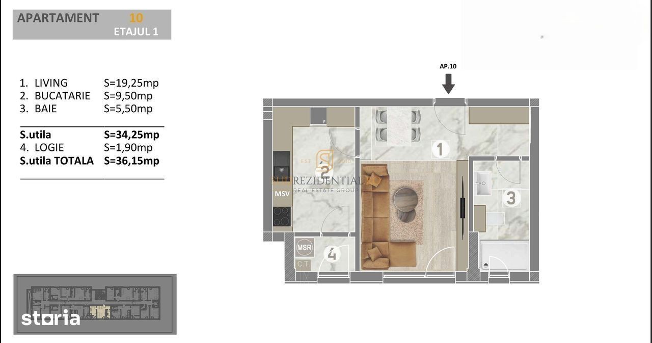 Va prezentam un apartament modern si eficient compartimentat, situat in cadrul proiectului Afy Residence, un imobil nou, construit la standarde moderne, aflat pe Strada Postalionului, in Sector 4 - una dintre cele mai dinamice si cautate zone rezidentiale din sudul Capitalei. Garsoniera este disponibila la etajul 1/6 si beneficiaza de o suprafata utila de 33.50 mp, la care se adauga un balcon generos de 6.30 mp, rezultand o suprafata totala de 39.80 mp. Compartimentare: - Living: 18.30 mp - Bucatarie inchisa: 8.00 mp - Baie: 4.50 mp - Hol: 2.70 mp - Balcon: 6.30 mp - cu acces direct din living Dotari si finisaje ale proiectului: - Tamplarie PVC cu geam termopan - Centrala termica individuala si incalzire cu radiatoare - Lift modern, interfon si casa scarii finisata complet - Acces securizat in ansamblu, cu bariera auto - Contorizare separata pentru utilitati Afy Residence este localizat excelent, in imediata apropiere a Bulevardului Constantin Brancoveanu si a centrului comercial Grand Arena Mall, oferind acces facil la: - Metro, Selgros, Hornbach, Carrefour, Lidl, Kaufland - Parcul Tudor Arghezi si Oraselul Copiilor - Unitati de invatamant, farmacii, clinici, banci - Mijloace de transport in comun (inclusiv STB cu legatura catre metrou) - Artere rutiere importante cu trafic fluent catre centrul orasului si iesirea din Bucuresti In pretul afisat nu este inclusa cota de TVA.