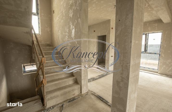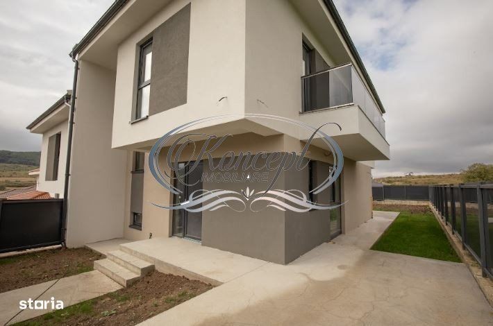 Koncept Imobiliare va ofera spre vanzare o casa de tip duplex, situata la intrarea in comuna Chinteni. Duplexul cu regim de inaltime S+P+E+Pod are suprafata utila de 182 mp + Pod si teren aferent de 300 mp si este compartimentat dupa cum urmeaza: Subsol- 2 spatii mari pentru depozitare; Parter - living open-space cu bucataria, baie, casa scarii si hol; Etaj - 3 dormitoare, 2 balcoane, 2 bai si hol. Aceasta proprietate se recomanda celor care isi doresc o casa calitativa fara compromisuri. Imobilul dispune de CF, iar vanzarea se face de pe persoana fizica, neimplicand costuri suplimentare de TVA. Pentru informatii suplimentare, programarea unei vizionari sau pentru a afla oferta noastra completa, nu ezitati sa ne contactati telefonic, prin e-mail sau la sediul agentiei noastre de pe str. Aviator Badescu nr. 19, Cluj-Napoca.