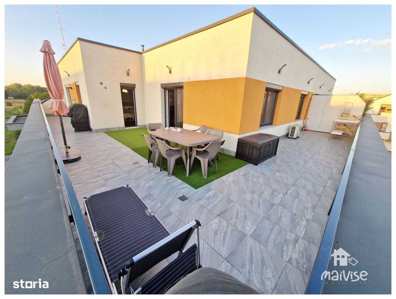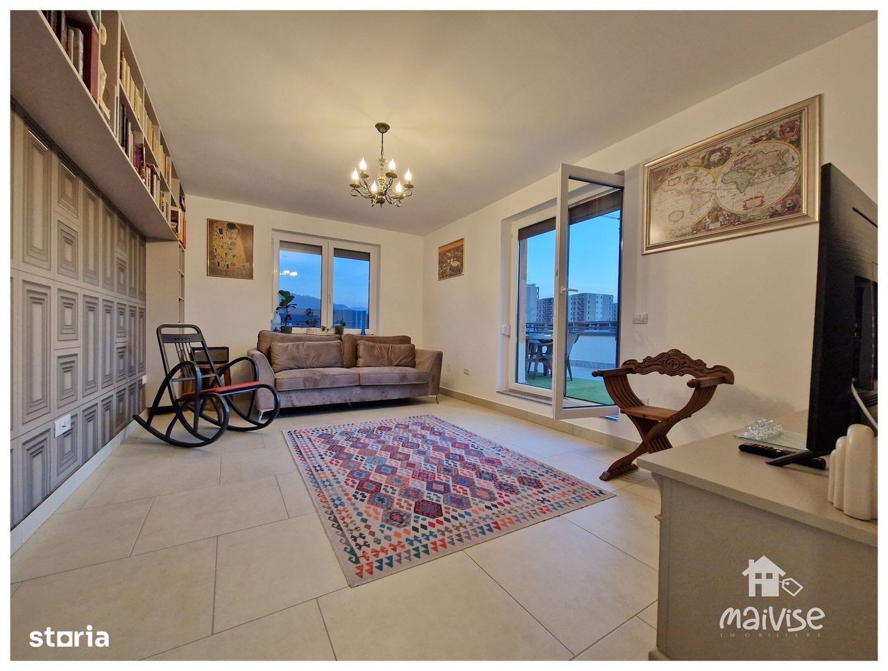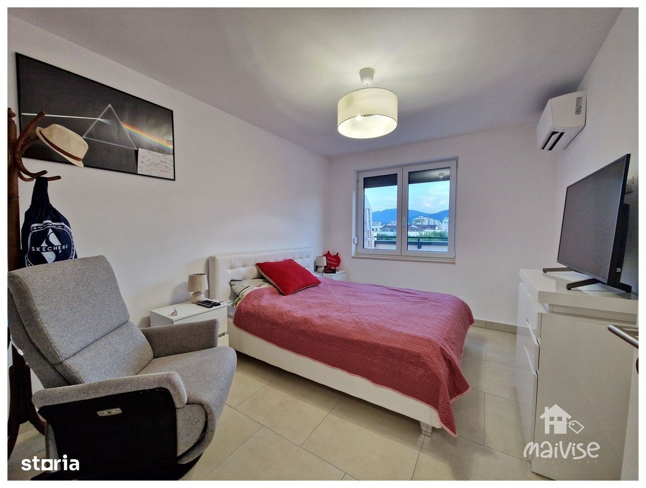 Maivise Imobiliare va propune spre vanzare o proprietate unica, deosebita, un Penthouse situat intr-un bloc nou din cadrul unuia dintre cele mai renumite ansambluri rezidentiale din noua zona rezidentiala a cartierului Tractorul, respectiv GRANDIS RESIDENCE. Proprietatea se desfasoara pe o suprafata utila totala de 147 mp, avand un view superb catre Muntele Tampa, Masivul Postavarul respectiv Muntii Bucegi. Aceasta priveliste poate fi admirata din cadrul terasei,aceasta avand o suprafata de 66 mp amenajata cu zona de barbeque, mobilier de gradina. Locuinta diapune de o structura decomamdata,spatioasa, avand o suprafata utila de 77mp, compusa din: - bucatarie utila integral ( masina de spalat vase, frigider, plita, cuptor, hota) si acces la terasa - living cu iesire in terasa - dormitor matrimonial deservit de o baie proprie si dressing propriu - dormitor copii - grup sanitar ce deserveste zona de zi - debara ( spatiu de depozitare) Proprietatea dispune de loc de parcare acoperit si o boxa. Inca din stadiul de constructie apartamentul a avut parte de o amenajare proprie a tot ceea ce inseamna terasament respectiv zona interioara a imobilului: - incalzire in pardoseala -jaluzele verticale fonice si termice - pervarz geamuri granit -iluminare terasament -hidroizolatie terasament-cauciuc siliconat etansat - zona de barbeque cu chiuveta alocata pe terasa - instalatie AC Pentu orice informatie suplimetara si detalii extra anunt, va stam la dispozitie oricand pe numarul de telefon alocat anuntului. De asemenea va asteptam prin telefon pentru a face si o programare la vizionare. Comision agentie 2%