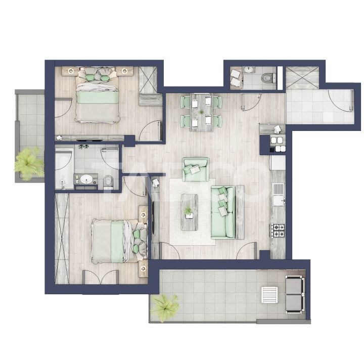 Apartament 63 mp utili 3 camere 2 bai gradina parter inalt Turnisor