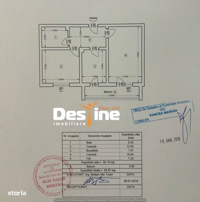 * DESTINE IMOBILIARE vă prezintă spre vânzare: ** Apartament 2 camere SD- VALEA LUPULUI * Preț: 106.000 EURO Apartamentul ideal pentru o familie sau investiție! - An construcție imobil 2018 - Suprafață utilă totală - 52 mp - ETAJ : 2 din 3 Detalii suplimentare si avantaje: ~ Centrală termică ~ Aer condiționat, ~ Tâmplărie din PVC ~ Izolație exterioară și casa scării Imobilul se află într-o zonă foarte accesibilă, la doar 5 minute de mers pe jos până la stația de autobuz spre Iași și Valea Lupului (cu legături către toate zonele din oraș), Carrefour ERRA, Popas Păcurari, Mall Moldova, farmacii, Apartamentul este foarte călduros iarna și răcoros vara, fiind foarte bine izolat și amplasat într-o scară curată, cu vecini liniștiți. IMPORTANT ! Apartamentul are un fond de rulment de 10.000 de lei in cadrul asociației de proprietari ! Dispune de loc de parcare împrejmuit pentru fiecare apartament ! Pentru vizionări sau informații suplimentare: PAUL GEARBĂ-