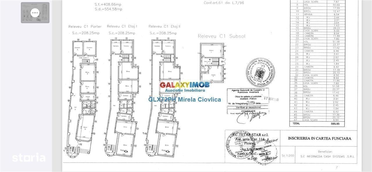 Oferta Exclusiva. Vanzare imobil-Ploiesti Jud.Prahova Oportunitate de investitie Cladirea de birouri cu regimul de inaltime P+2, este situat pe str.Buna Vestire, o zona buna a Mun.Ploiesti, Jud.Prahova. Fiecare nivel al cladirii (parter, etaj 1, etaj 2) are o suprafata construita de 208mp.Cladirea are si subsol in suprafata de. ce poate fi folosit ca spatiu de depozitare arhiva. Pe fiecare nivel exista centrala termica, chicineta si grupuri sanitare, birouri.Se poate realiza cu usurinta cate un apartament pe nivel. Cladirea este foarte bine construita, foarte solida rezistenta, in momentul de fata este funtionala complet. Imobilul are nevoie de redecorare renovare. Pretul de vanzare este de 247.000 euro, usor negociabil. Toate actele sunt complete si la zi. Informatii eficienta energetica: Clasa energetica: B Consumul de energie primara: Indicele de emisii echivalent CO2: Consum de energie din surse regenerabile: