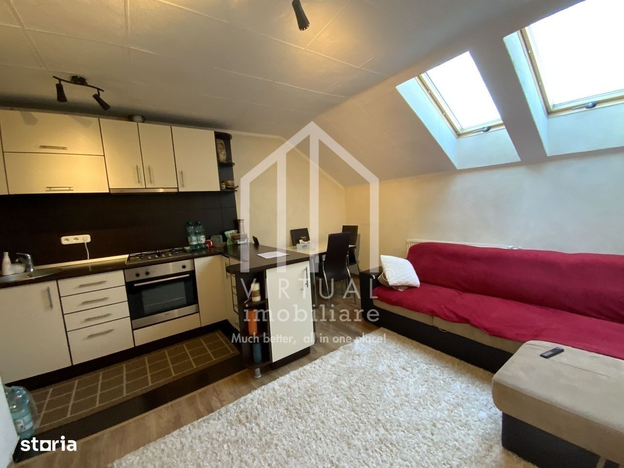 Apartament de inchirat cu 2 camere, mobilat si utilat, la mansarda (din constructie) etaj 4 Locatie: Sibiu - Zona Strand II Avantaje: -mansarda din constructie -mobilat si utilat - finisaje de calitate -geam de aerisire la baie -pod cu acces din apartament Compartimentare: -hol - living cu bucatarie inchisa -baie - dormitor Se percepe ca și garantie contravaloarea unei chirii. Comisionul perceput pentru închirierea apartamentului este de 50%+TVA din prima închiriere. Iti doresti mai mult decat o simpla locuinta? Noi suntem aici pentru a-ți oferi cele mai bune soluții. Oferim servicii de DESIGN SI AMENAJARI INTERIOARE, PROPERTY MANAGEMENT, REGIM HOTELIER, HOME STAGING, VIRTUAL INVESTMENT, SERVICII DE CURATENIE.