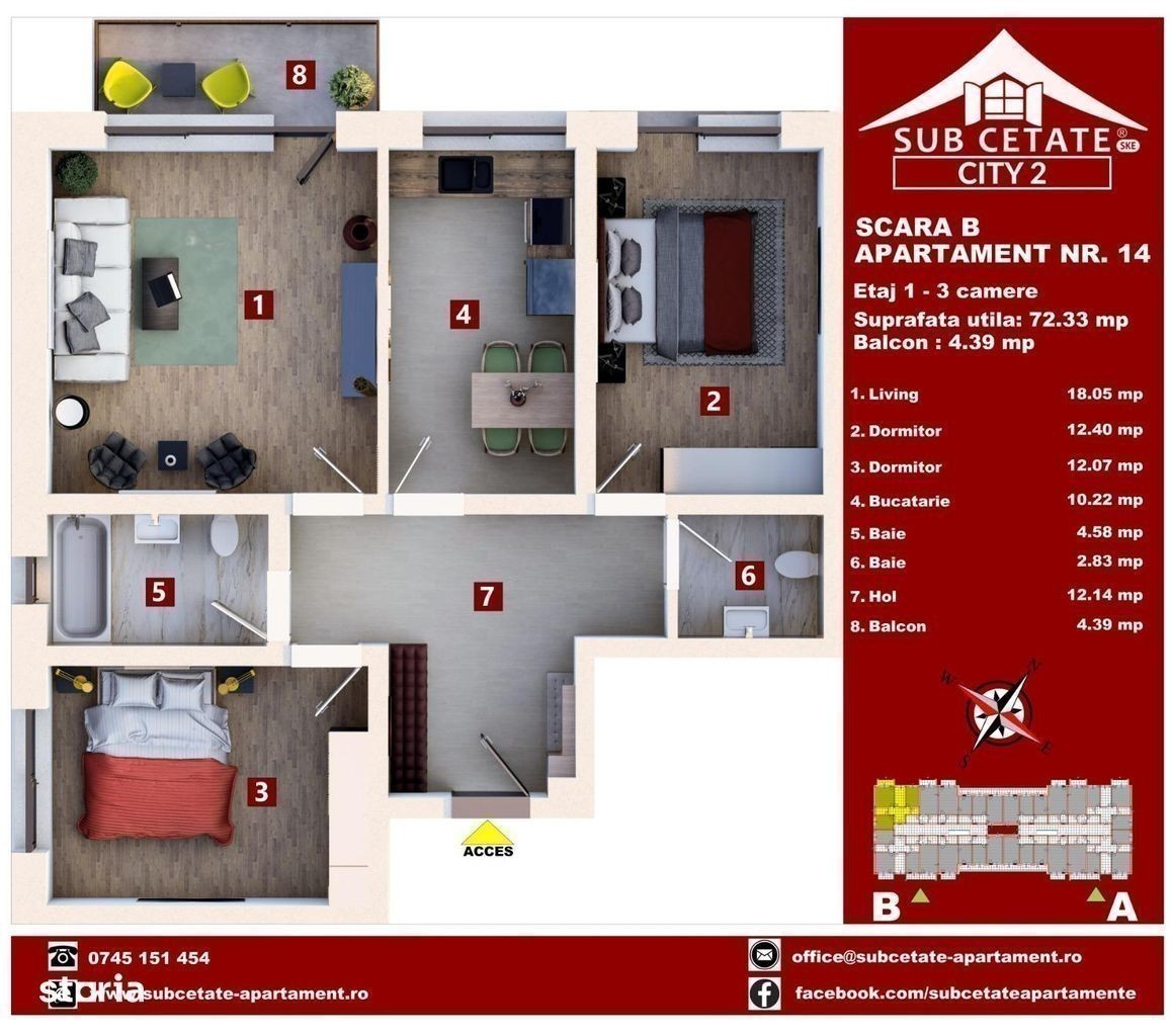 Apartament 3 camere 72 mp - Mansarda / Direct dezvoltator