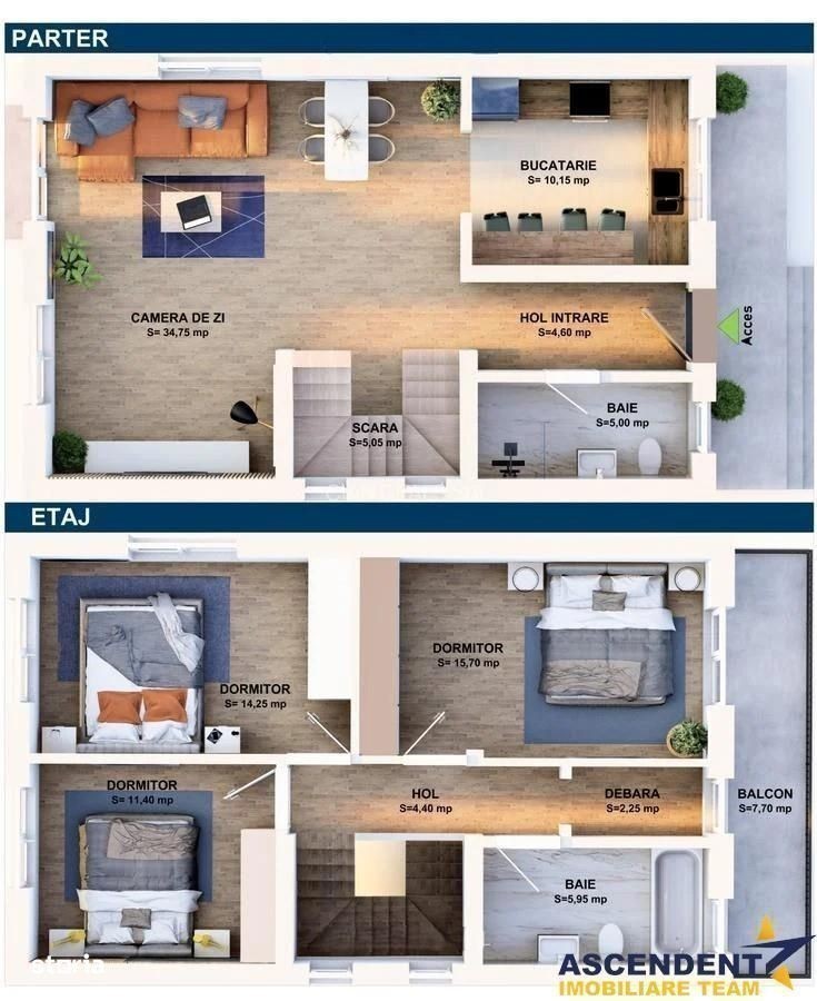 Comision cumparator 2% + TVA ! Ascendent Imobiliatre va propune spre vanzare 1 duplex, in localitatea Sanpetru situat intr-o zina in plina dezvoltare si cu acces facil si iesire rapida catre oras. Imobilul este finalizat si intabulat cu bransamente la utilitati (gaz, curent, apa, canalizare). Proprietatea dispune de o suprafata de 119 mp utili, formate din: Parter Living cu bucatarie, hol, baie si casa scarii, La etaj 3 dormitoare, balcon si baie. Construita pe un teren de 292 mp aces auto pavat interior. Finisajele sunt moderne, cu incalzirie in pardoseala cu pompa si distrubitori pe etaj si parter. La vanzare exista si disponibilitate de casa individuala la pretul de 220 mii euro cu TVA inclus cu teren 348 mp. In imediata apropiere a casei se afla un parcul de copii, spalatorie auto si acces catre drum foresterie pentru pasionatii de calatorii in natura prin rezervatia naturala Lempes. Consilier specializat pe aleasa oferta: domnul Anghel Livius Telefon WhatsApp: