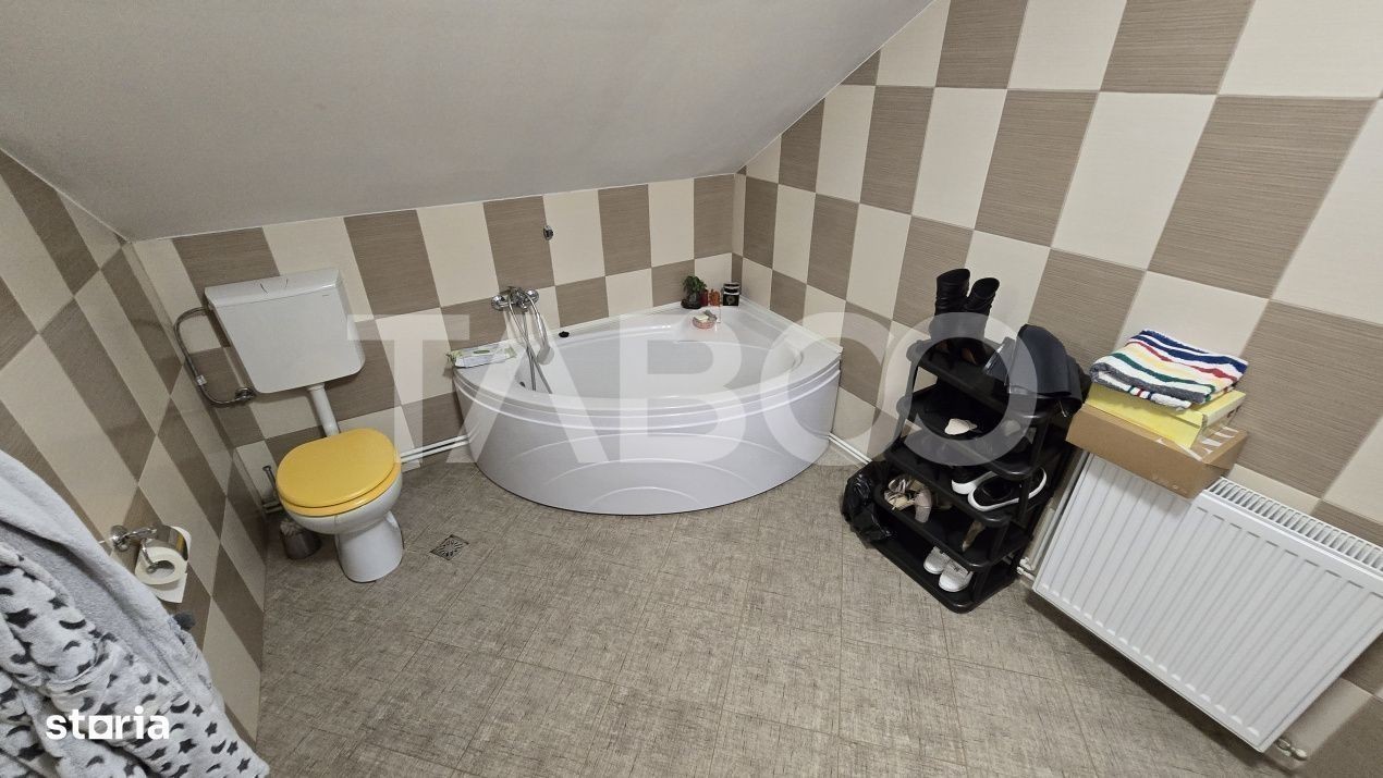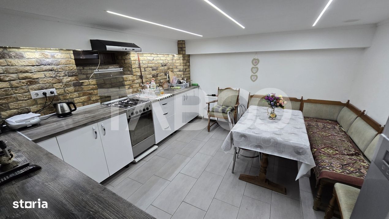 Doresti sa achizitionezi o locuinta? Vrei o casa cu 5 camere in Sibiu? Aceasta casa de vanzare cu 5 camere in zona Selimbar, Sibiu este alegerea potrivita pentru tine si familia ta. Casa de vanzare cu 5 camere din zona Selimbar, Sibiu, are suprafata construita de 237 mp si suprafata utila a casei de 166 mp. Structura cladirii este din caramida, are sistem de incalzire cu centrala proprie si calorifere. Casa are un stil modern si elegant si este de vanzare partial mobilata si utilata. Imobilul are o curte libera de 132 mp cu, spatiu pentru zona de joaca a copiilor si un foisor cu gratar frumos amenajat. Casa din zona Selimbar, Sibiu este compartimentata astfel: ~ Demisol: pivnita si bucatarie; ~ Parter: hol, living, baie, dormitor; ~ Mansarda: hol, 3 dormitoare, baie, balcon; ~ Pod depozitare. Finisajele interioare sunt moderne: ~ Usa intrare: metal; ~ Usi interioare: lemn; ~ Tamplarie ferestre: pvc; ~ Podele: parchet, gresie; ~ Finisaj: finisat; ~ Pereti: vopsea lavabila, faianta. Pret: 239.900€ Sună-ne acum și află detalii despre această proprietate de vanzare din Sibiu, dar și despre alte proprietăți potrivite pentru tine.
