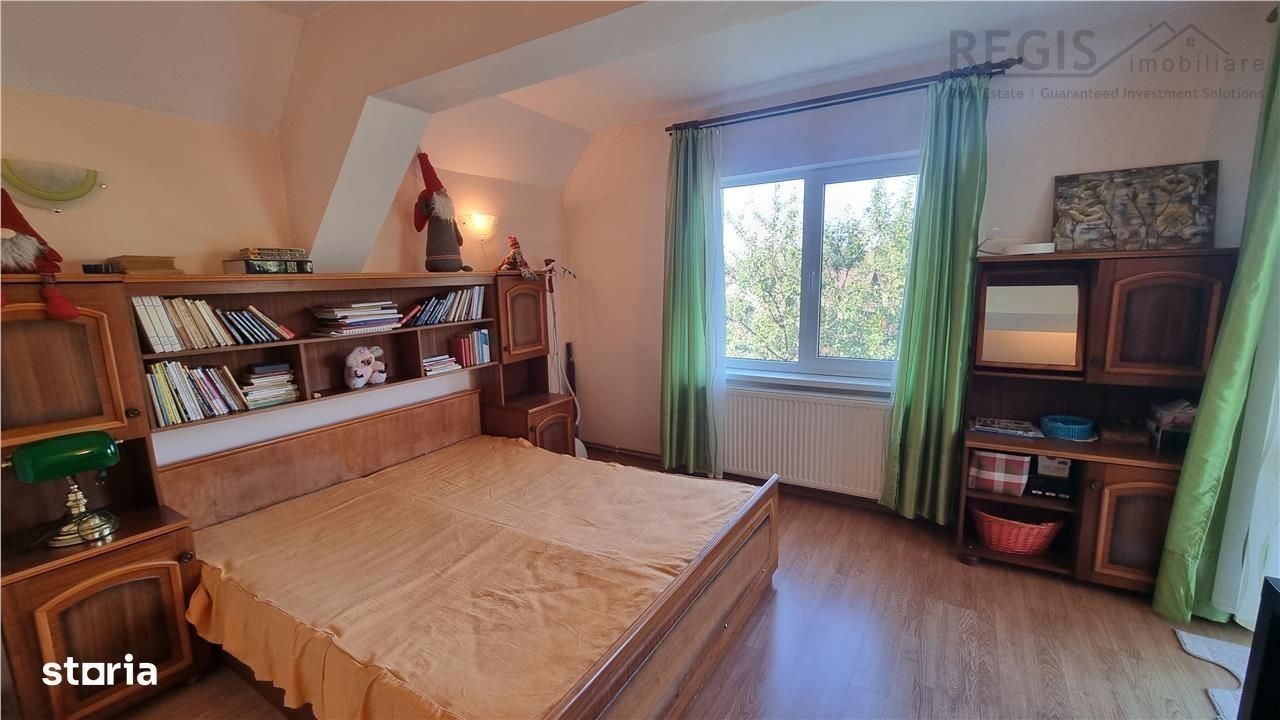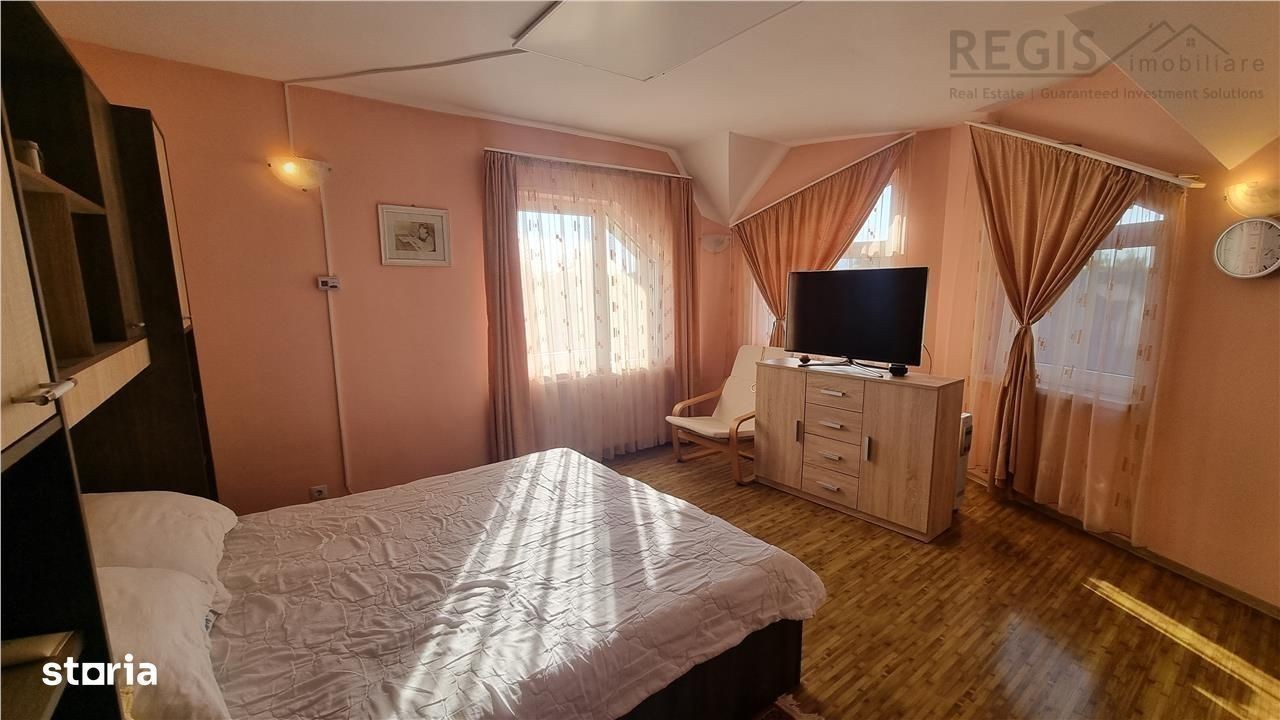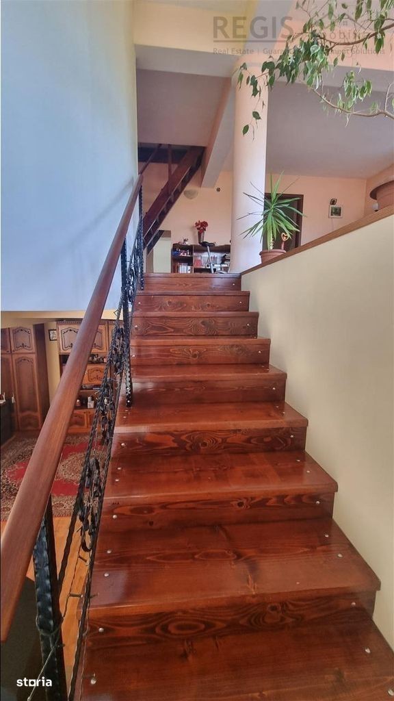 ID intern: 5831 REGIS Imobiliare va propune spre vanzare o vila de 8 camere situata ultracentral in cartierul Stupini. Vila individuala este construita pe un teren de 1500 m², cu un regim de inaltime D+P+1+ M, constructie solida pe o fundatie de beton ce permite ridicarea altor etaje. Terenul este marginit de pâraul Ghimbașel, pe o suprafata inalta ce nu a fost niciodata inundata, cu iesire la soseaua principala. Proprietatea detine in demisolul de 150 m² garaj subteran, atelier, camere tehnice si bucataria de vara. La parterul inalt avem o sufragerie, trei camere, baie, bucatarie cu iesire pe terasa spatioasa. Etajul întâi este impartit in sufragerie baie si doua dormitoare si balcon. Mansarda semifinisata de aproximativ 80 m² este gata de transformare in spatiu locuibil, cu instalatiile sanitare si electrice deja trase si cu izolatia cumparata. Mansarda ofera privelisti incantatoare din ambele parti ale casei. Detalii proprietate: - Suprafata utila: 260 mp - Suprafata teren: 1500 mp - Amprenta la sol: 130 mp - An constructie: 2008 (renovata in 2020) - Structura: beton armat Compartimentare: - 8 camere - 5 dormitoare - 5 bai - 2 bucatarii - 7 balcoane Dotari si finisaje: - Acoperis: Lindab - Incalzire: centrala termica + sobe - Podele: parchet, gresie - Pereti: lavabil, faianta - Mobilier: complet, stil clasic - Bucatarie: mobilata si utilata Curte: individuala, teren in proprietate. Pretabil pentru: locuinta, locuinta birou, spatiu comercial. Avantajele vietii intr-o casa in Stupini: - Atmosfera linistita, departe de agitatia orasului, dar cu acces rapid spre centrul Brasovului. - Teren generos, perfect pentru gradina, loc de joaca pentru copii sau zona de relaxare. - Intimitate si confort, fara vecini imediat lipiti. - Posibilitatea de a imbina locuinta cu spatiu pentru birou sau activitate comerciala. COMISION : 0 Bine Ati Venit Acasa!