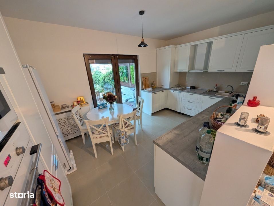 Va oferim spre achizitie fara comision o casa tip duplex (4 locuinte cuplate in cruce cu cate doi pereti comuni) cu o suprafata totala de 140mp, si o curte foarte mare de 723mp. Se vinde mobilata si utilata asa cum este in poze. Asa cum v-am obisnuit: - toate ofertele Monga Imobiliare sunt fara comision din partea cumparatorului - pentru ca iubim transparenta, toate preturile afisate de Monga Imobiliare includ TVA (daca se aplica). Pretul afisat de noi este intotdeauna pretul final pe care il vei achita. Acceseaza Monga Imobiliare (Monga RO) pentru mai mai multe poze si pentru intreg portofoliul nostru de case si apartamente din Otopeni, Tunari, Balotesti, Corbeanca, Pipera si chiar nordul Bucurestiului. Punctul forte al acestei case il reprezinta curtea spatioasa cu vegetatie matura, fireplace si iaz cu pesti. Spatiul va permite sa va bucurati de liniste in propria curte dar cu acces rapid catre Bucuresti. Despre spatiu: La parter, accesul se face printr-un hol ce comunica cu o baie un dormitor si un living spatios. Din living se acceseaza bucataria, iar de aici terasa inchisa. La etaj avem un dormitor cu dressing si baie si inca un dormitor cu baie proprie. Curtea este generoasa cu vegetatie si facilitati multiple pentru un plux de relaxare: zona superba cu fire-pit ingropat din beton, placat cu WPC, iaz cu pesti si plante, cu system de filtrare a apei, casuta de joaca pentru copii, sistem automatizat de irigare prin aspersie, arbori maturi ( Artar japonez, Mesteceni, Brazi, Pini, Cedru etc) si arbusti. Casa este localizata la un capt de drum, incat cel putin 4 masini se pot parca in fata casei. Casa este localizata intr-o zona foarte linistita, cu accesa directa la drumul ce leaga Balotesti de Pipera. De aici ofera 3 variante de acces catre Bucuresti prin Pipera, DN1 sau A3. Alte detalii Statie dedurizare Rulouri anti-efractie Sistem de alarma Recent vopsita si partial renovata Toate utilitatile (acum are fosa septica, dar exista canalizare la poarta) Facilitati in apropiere Magazin alimentar La 2 Pași Pizzerie Grădiniță & Creșă Sală de sport Apeleaza cu incredere la Monga Imobiliare. Suntem alaturi de tine pana la finalizarea tranzactiei si te ajutam sa treci cu incredere si in cunostinta de cauza prin toti pasii necesari. Te putem ajuta in pregatirea documentelor, selectia notarului, obtinerea finantarii, si altele. Te asteptam sa ne contactezi.