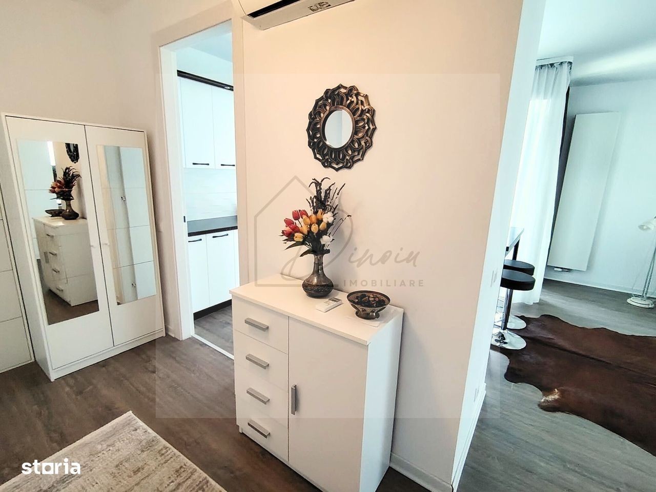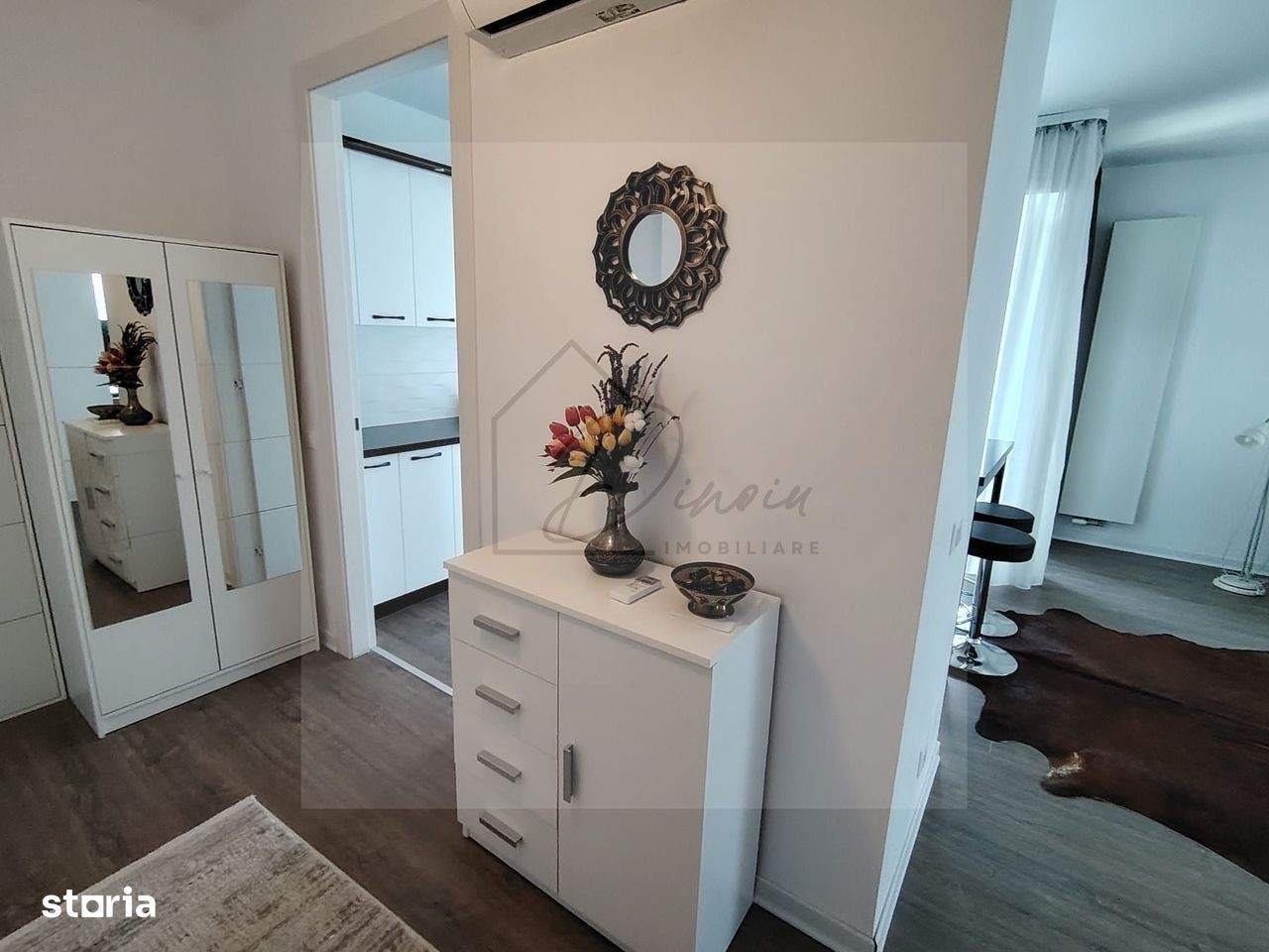 Va ofer spre inchiriere apartament cu 2 camere in cartierul Aviatiei, in complexul premium Cloud 9, langa Promenada si Metrou Aurel Vlaicu, sector 1, in zona de business / corporate din Nordul Bucurestiului, intr-o comunitate selecta si moderna. Conditii inchiriere: pret chirie 790 eur/luna, cu loc de parcare subteran inclus in pret - contract minim 1 an; plata 1 luna in avans si 800 eur garantie - NU se fumeaza in interiorul apartamentului - NU sunt acceptate animalele de companie Apartamentul este decomandat, cu vedere catre Promenada, situat la etajul 3/11, in bloc construit in 2023, cu suprafata utila totala de 57 mp (inclusiv balcon de 3,6 mp), cu o compartimentare inteligenta a spatiilor dupa cum urmeaza: - hol intrare cu pantofar si dulap depozitare - living spatios si luminos, cu zona de relaxare; iesire catre balcon - bucatarie open-space spatioasa, complet utilata (inclusiv masina de spalat vase), cu zona de bar; cu iacces catre balcon; cu fereastra - ideal pentru aerisire naturala - baie spatioasa cu cada - balcon - loc de parcare subteran inclus in pret Facilitati Complex Cloud 9: - magazin Carrefour Expres la parterul blocului, chiar langa intrarea in scara - cafenea 5 to go; salon, - centrala de bloc cu calorifere pentru confort sporit iarna; sistemul de incalzire cu controller wi-fi pe fiecare calorifer in parte, controlat de la distanta si din aplicatie de pe telefonul mobil - fatada ventilata imobil - buna izolare fonica si termica - zone verzi - paza non stop 24/7; supraveghere video Facilitati locatie: - aproape de statia de metrou Aurel Vlaicu, Promenada Mall - langa stații STB si STV - aproape de Parcul Herastrau - magazine, restaurante, cafenele, saloane, cofetarii, barber shop, banci, etc - langa zona de business / corporate din Nordul bucurestiului Va invit sa programati o vizionare in al 9 lea cer! Alina Dinoiu Pentru mai multe oferte, va astept aici dinoiuimobiliare.ro