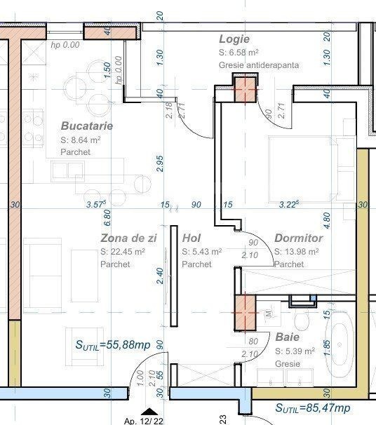 Apartament cu 2 camere, semidecomandat, 62 mp utili, zona Aradului