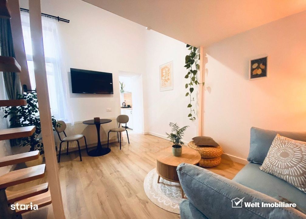 Vă propunem spre achiziție un apartament cu o cameră, finisat modern, situat chiar în inima orașului Cluj-Napoca, la doar 3 minute de Piața Unirii. Imobilul este amplasat la etajul 1 al unei clădiri de tip vilă și oferă: Suprafață utilă: 21 mp Supanta: 7 mp Acces la terasă: ~2,5 mp Apartamentul este pregătit pentru mutare sau investiție, beneficiind de: centrală termică proprie, geamuri termopan,frigider, plită electrică și alte dotări conform fotografiilor din prezentare. Datorită poziției excelente și compartimentării eficiente, proprietatea este ideală atât pentru regim hotelier, cât și pentru închiriere pe termen lung. Pentru detalii suplimentare sau pentru a programa o vizionare, vă stăm cu drag la dispoziție la numerele afișate.