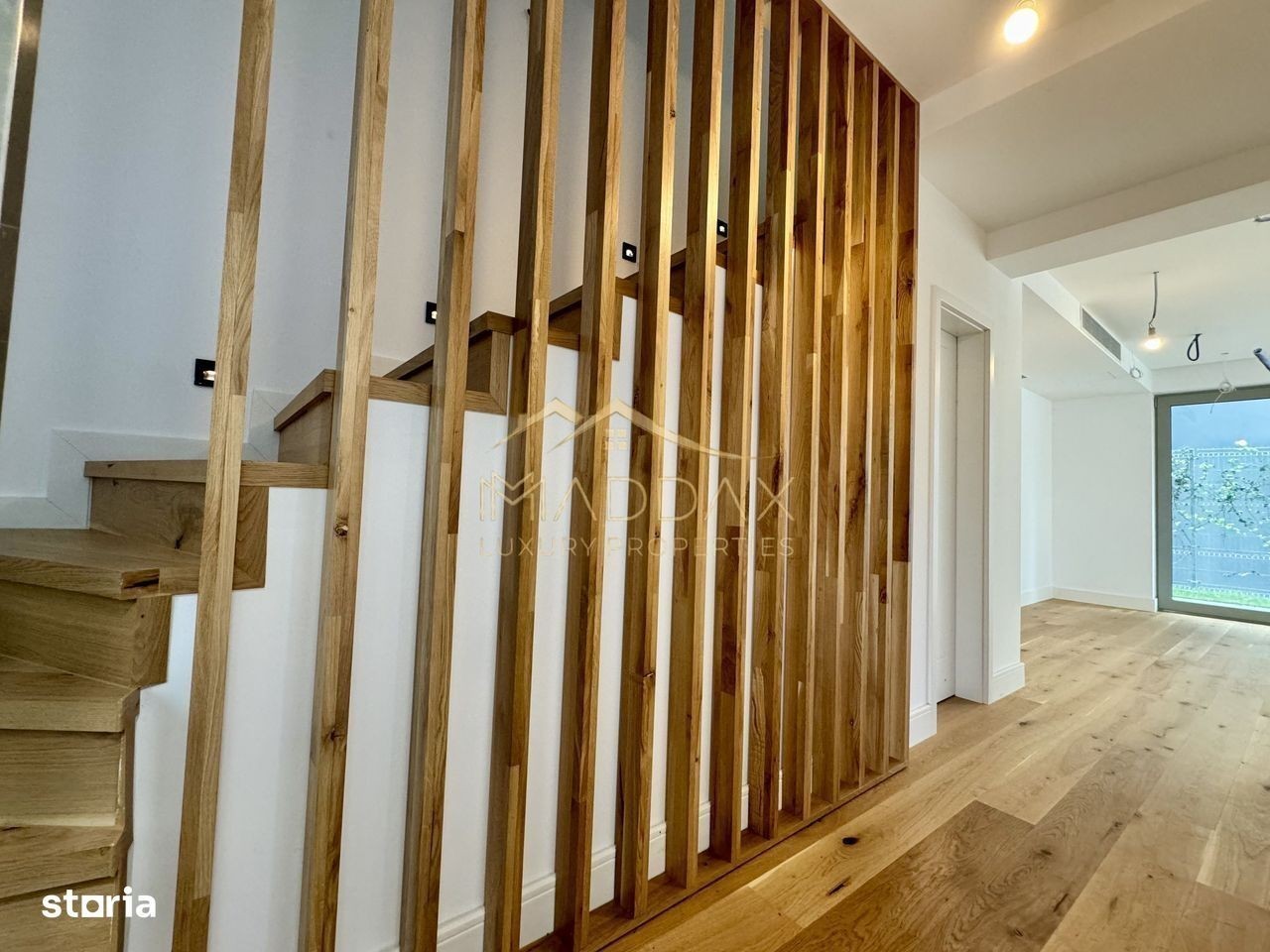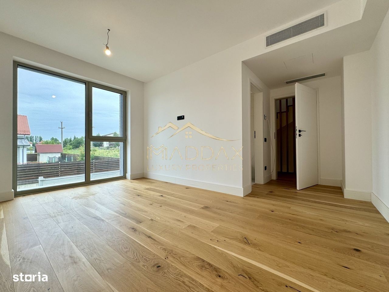Maddax are plăcerea sa prezinte o vila impresionanta, in una din cele mai prestigioase zone, Pipera, in proximitatea străzii Erou Iancu Nicolae. Vila sugerează o oaza de liniște fiind conectata la oraș, ferita de bulevardul principal oferind intimitatea comunității retrase. Compartimentarea este un aspect foarte important in alegerea locuinței, aceasta vila avand o împărțire ideală, gândită pentru nevoile unei familii: Parter: Living si zona de dining cu posibilitatea de ieșire in curte cu intimitate deplina, bucatarie si un grup sanitar; Etaj 1: doua dormitoare fiecare având dressing generos si baie proprie; Mansarda: o camera open space, doua dormitoare, baie si zona de spălătorie. Înălțimea parterului si etajului 1 este de 3m, iar mansarda are o înălțime impresionanta de 6m. Finisajele sunt moderne, de cea mai înaltă calitate, ceramica Tempini Calacatta, parchet de stejar triplustratificat Barlinek, iar structura este din beton armat si cărămida Porotherm 30cm, fațada polistiren 15cm la exterior, cărămida aferentă, sistem colectare ape pluviale mascat prin fațada, partiții interioare gips-carton cuplu cu sistem antifonic cu vata bazaltică, termosistem mansarda din vata minerală bazaltică de 20cm. Sistem de încălzire/răcire Hitachi: pompa de caldura cu unități interioare mascate in plafon, încălzire in pardoseala, producere apa calda menajera, clima cu reglaj temperatura individual pe camera. In proximitate sunt mijloace de transport in comun, British School, multiple restaurante. Pentru mai multe detalii, suntem aici pentru tine.