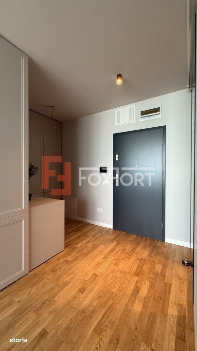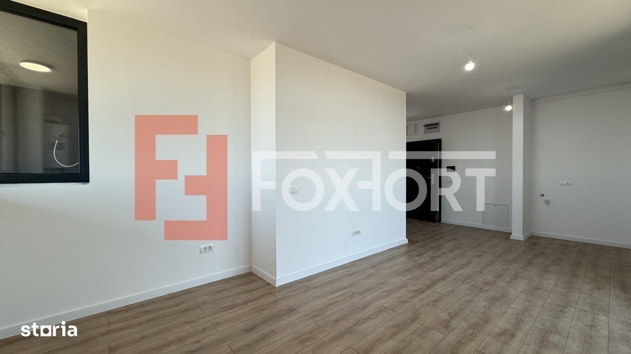 Apartament cu 2 camere de vanzare in Timisoara, zona Torontalului. FOXFORT propune spre vanzare un apartament cu 2 camere, open space, situat in localitatea Timisoara, zona Torontalului, aflat la etajul 7 intr-un bloc cu regim de inaltime pe Parter + 16 Etaje. Anul constructiei 2025, structura este din beton cu zidaria din caramida. Suprafata utila de 43 mp + balcon 5,75 + Logie 2,22 mp. Apartamentul este structurat astfel: - Hol; - Living cu bucatarie si balcon - Baie; - Dormitor cu balcon. Finisajele interioare sunt moderne: - Usa intrare: metal; - Usi interioare: celulare; - Tamplarie ferestre: pvc; - Podele: parchet, gresie. Incalzirea se realizeaza prin intermediul centralei proprii prin pardoseala. Pretul este de 108.990€ + TVA COMISION 0%. Se accepta ca si modalitate de plata surse proprii sau credit bancar. Indicator performanta energetica: Clasa A ID intern: V8575